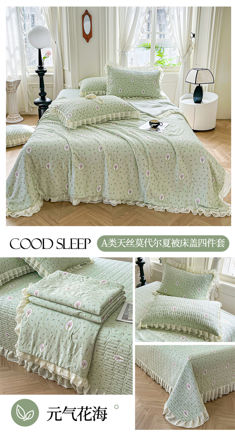 商品名称:宜凡家纺 2024新款莫代尔印花床盖夏被四件套 元气花海