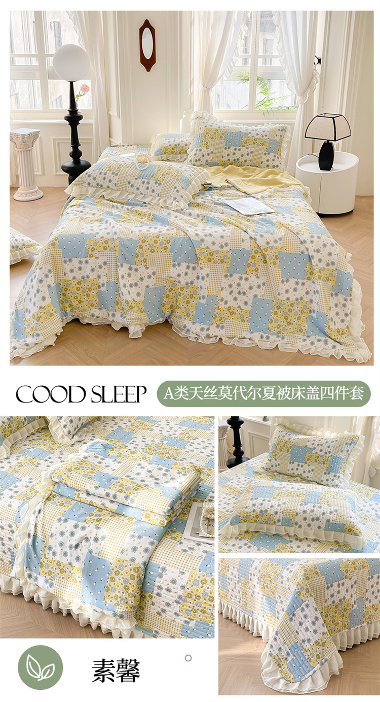 商品名称:宜凡家纺 2024新款莫代尔印花床盖夏被四件套 素馨