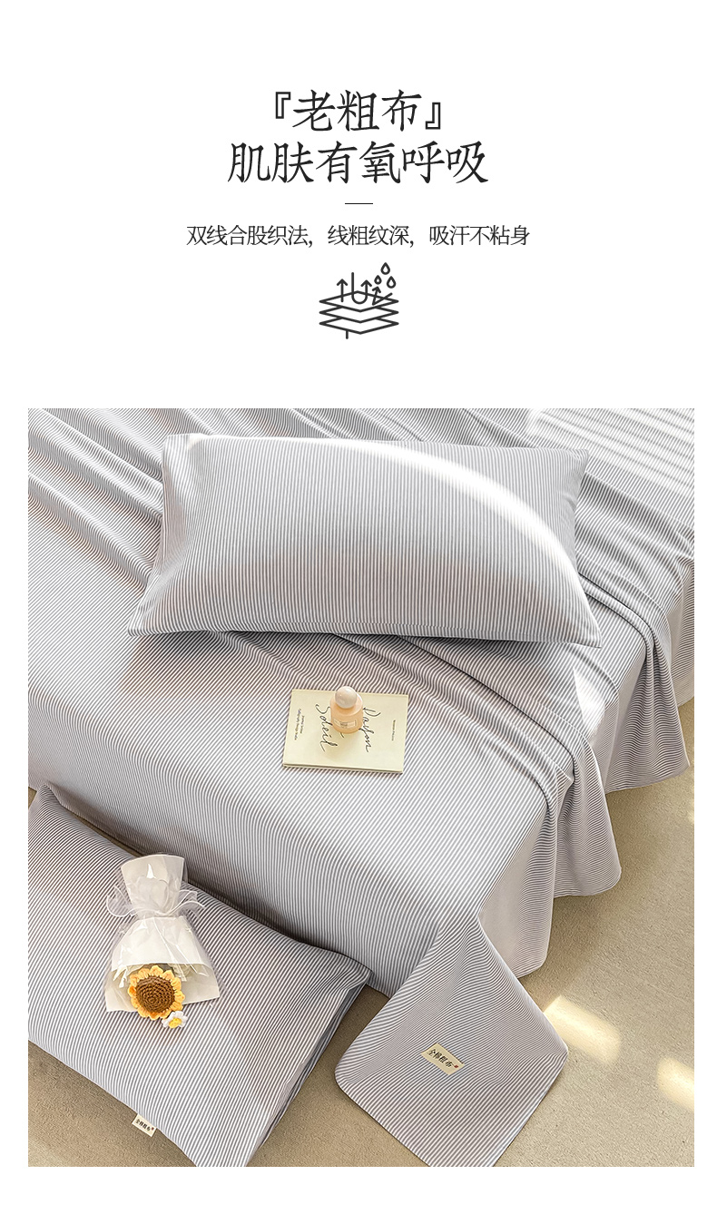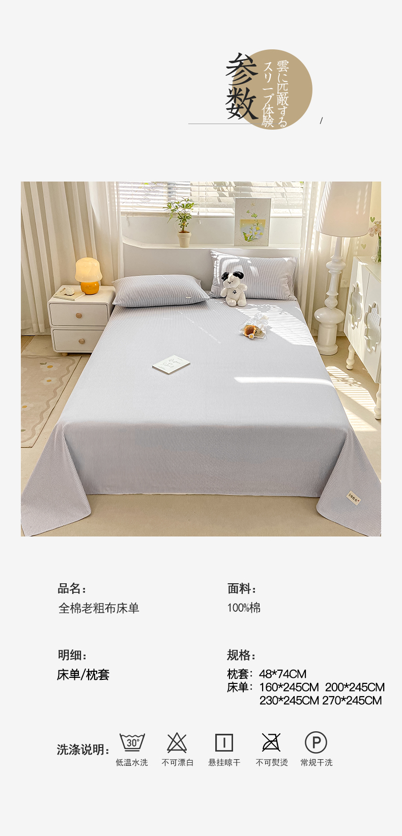 • 91家纺网 家纺一手货源 找家纺 卧趣家纺 2024新品全棉老粗布单品床单床笠系列-单品床单系列 莱卡-灰