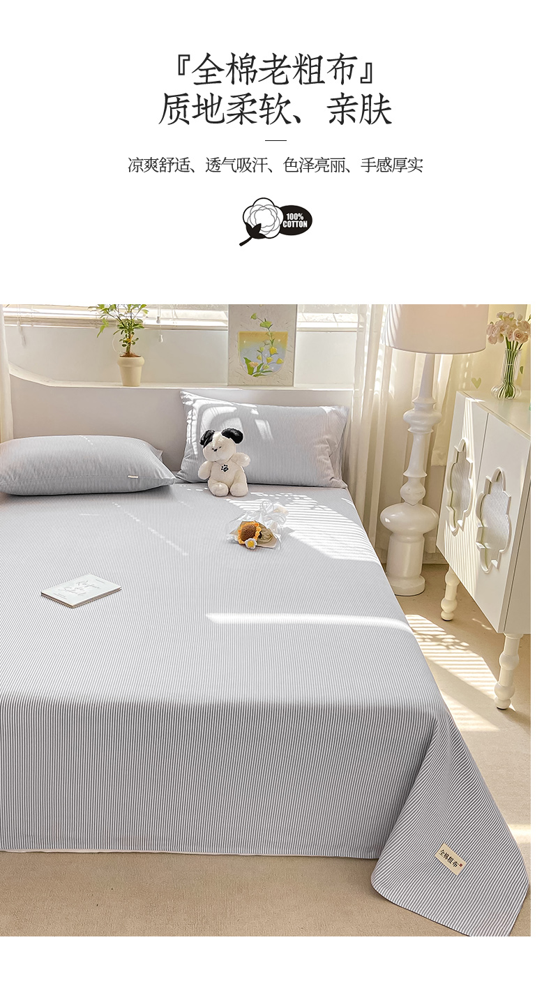 卧趣家纺 2024新品全棉老粗布单品床单床笠系列-单品床单系列 莱卡-灰