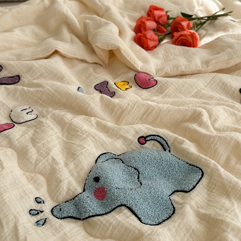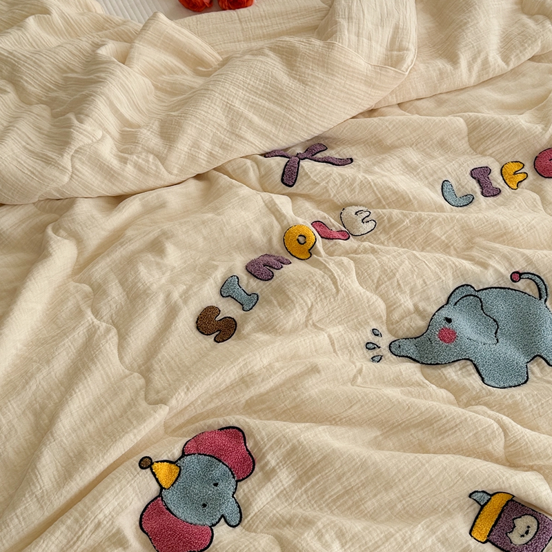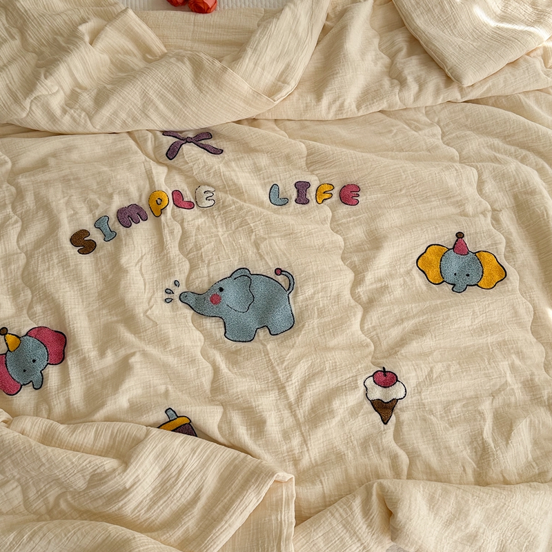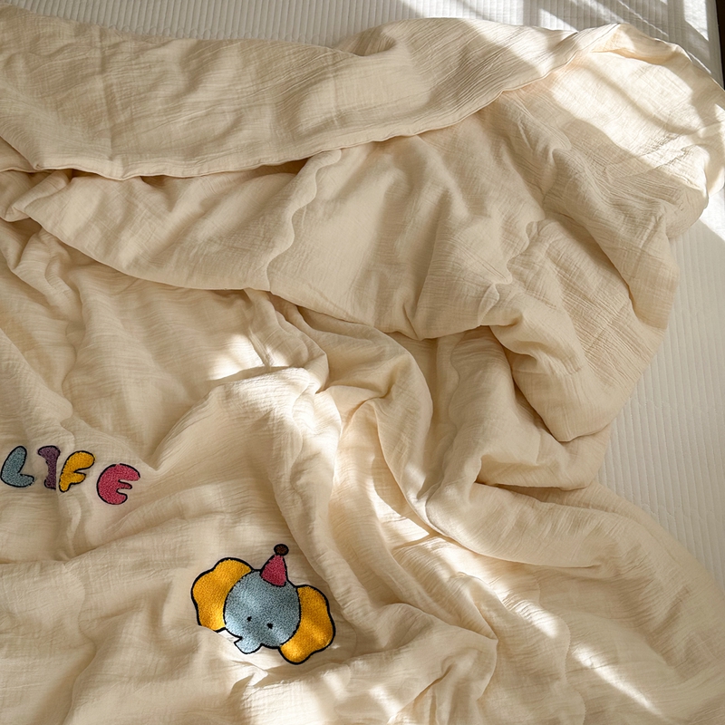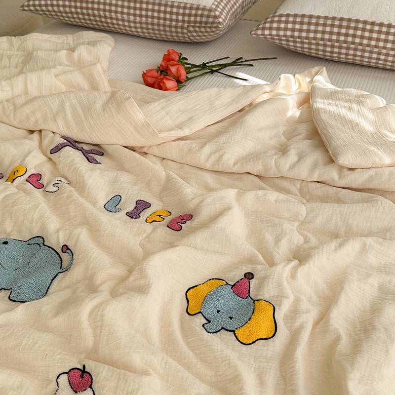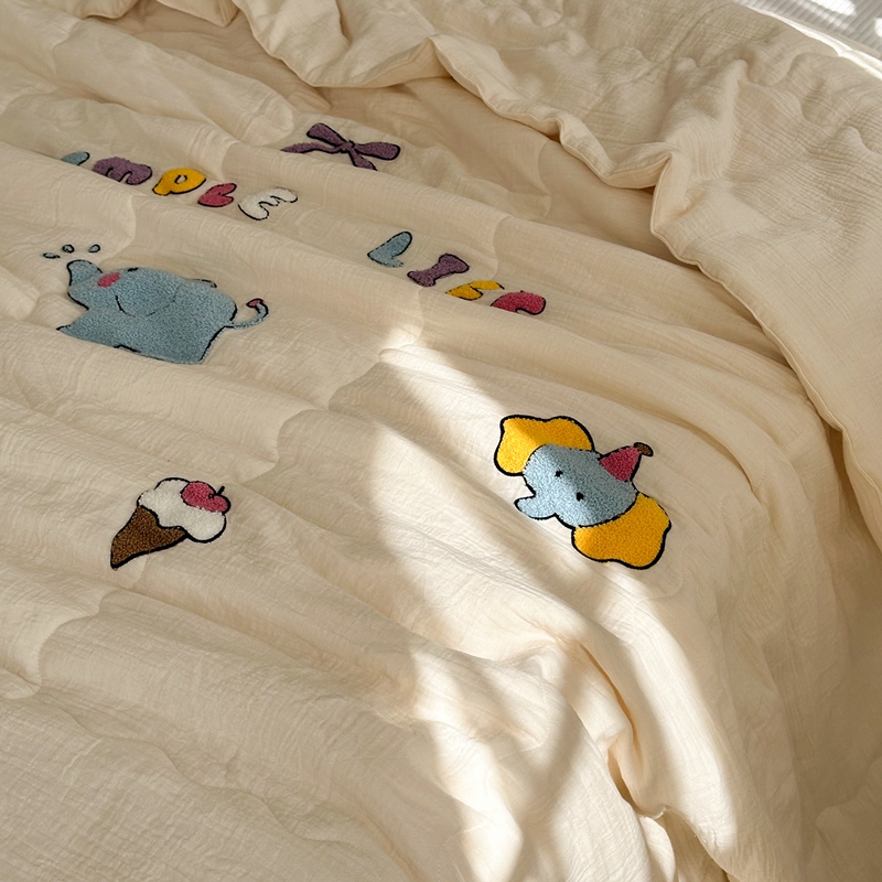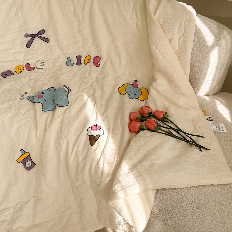 洋铭区(原狠狠爱)2024新款皱皱纱绣花夏被 甜筒小蓝象