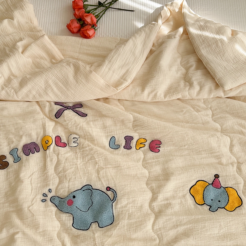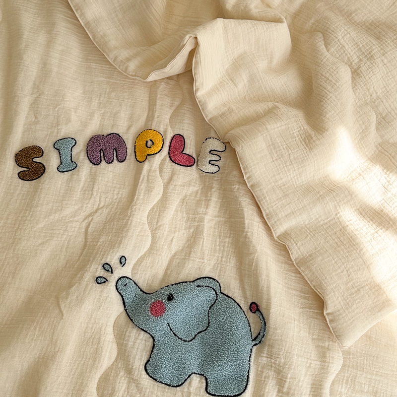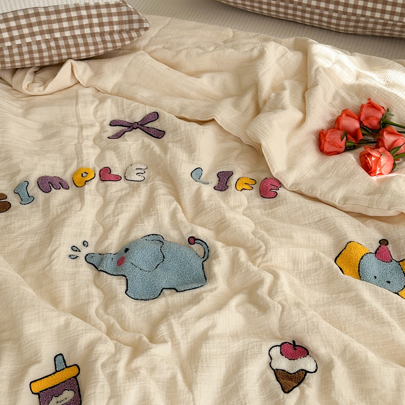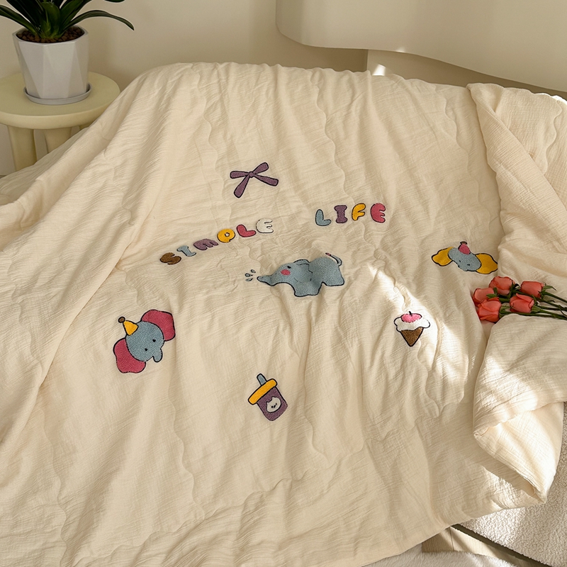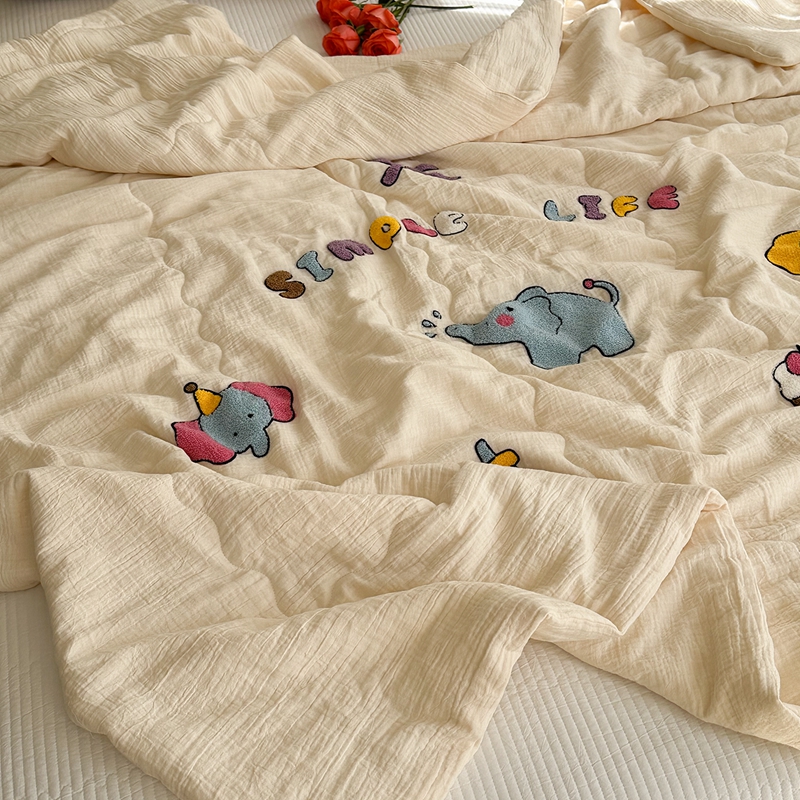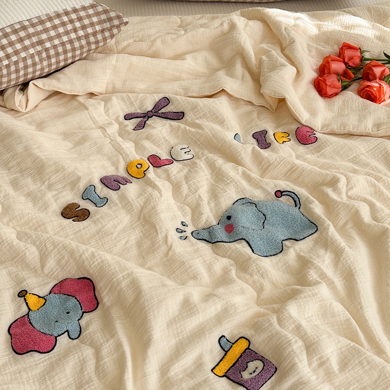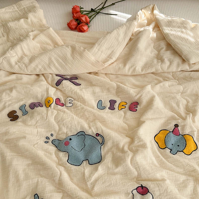 洋铭区(原狠狠爱)2024新款皱皱纱绣花夏被 甜筒小蓝象
