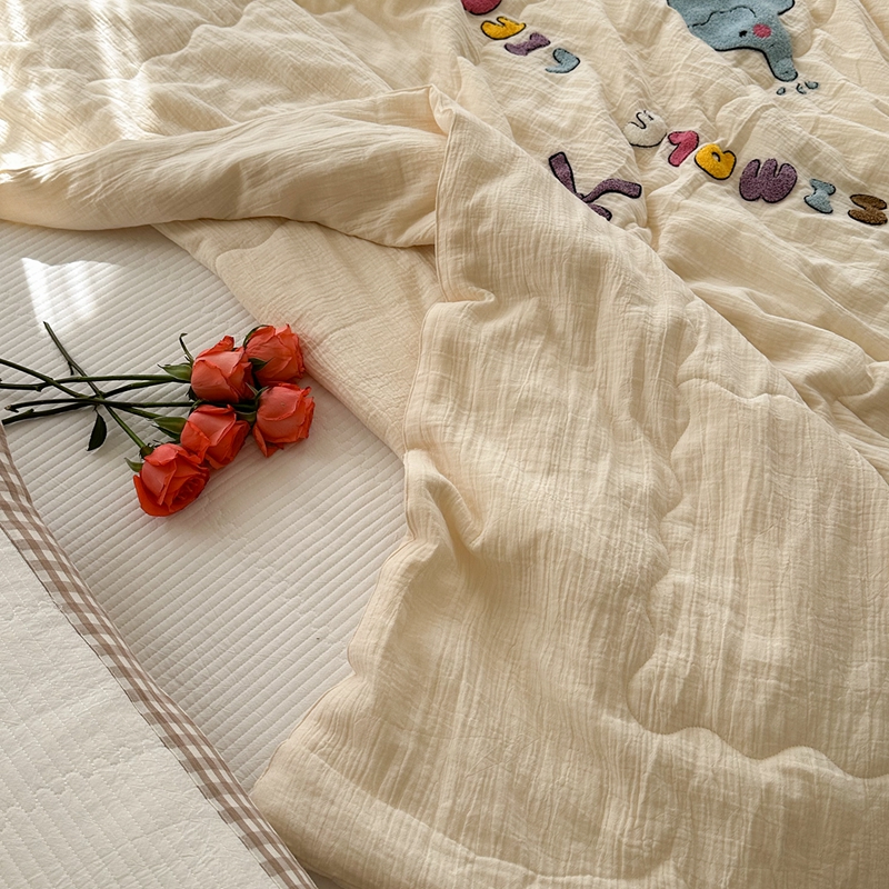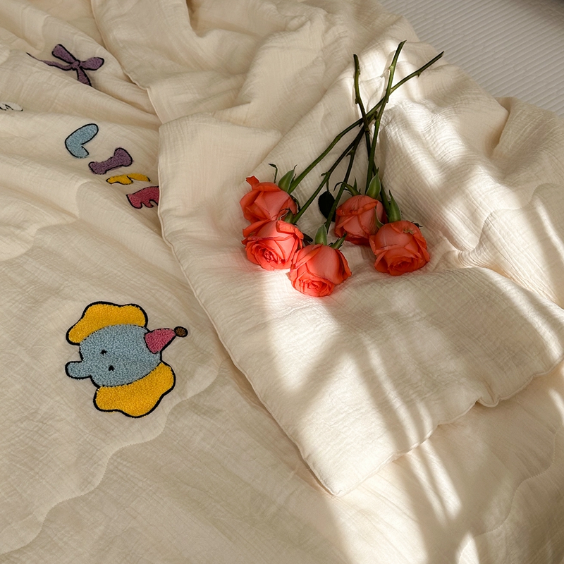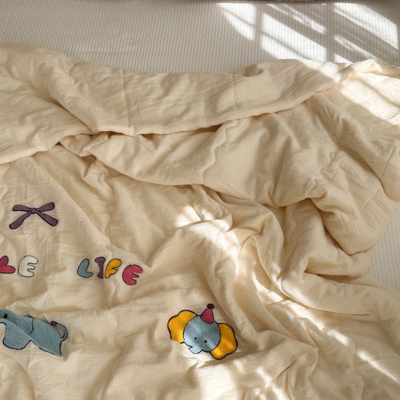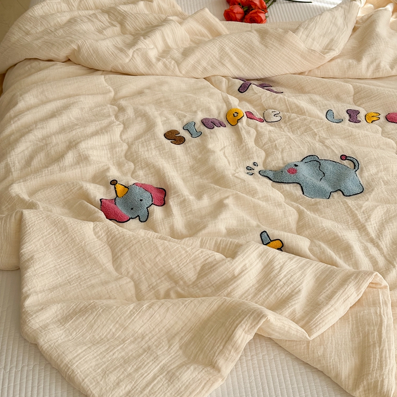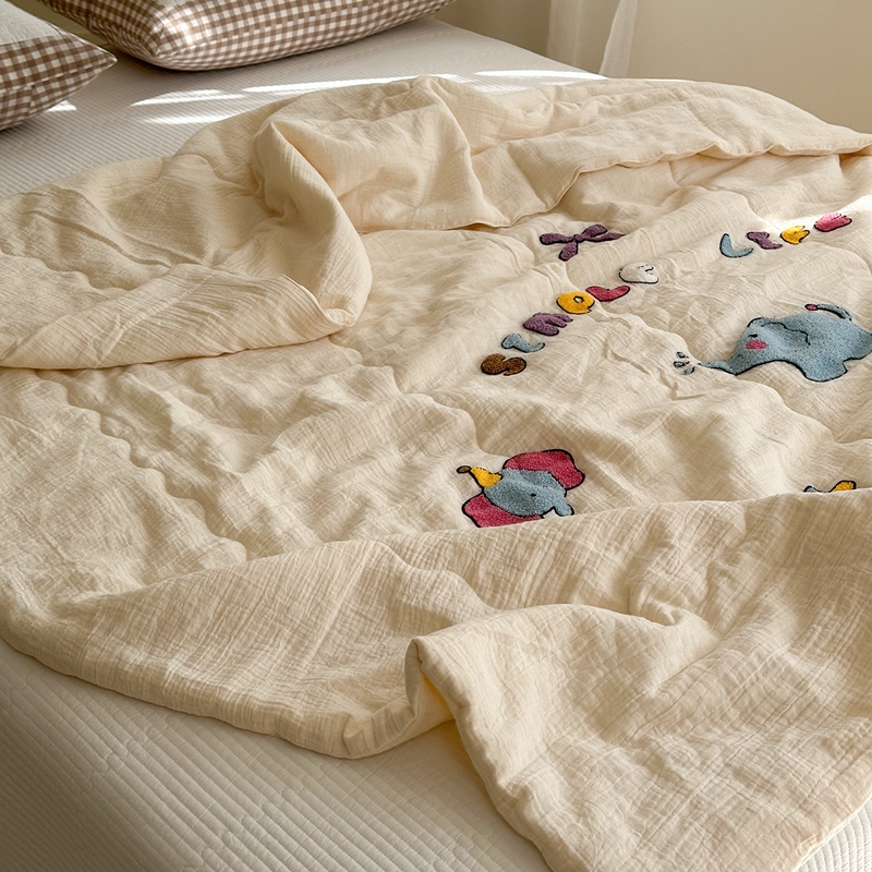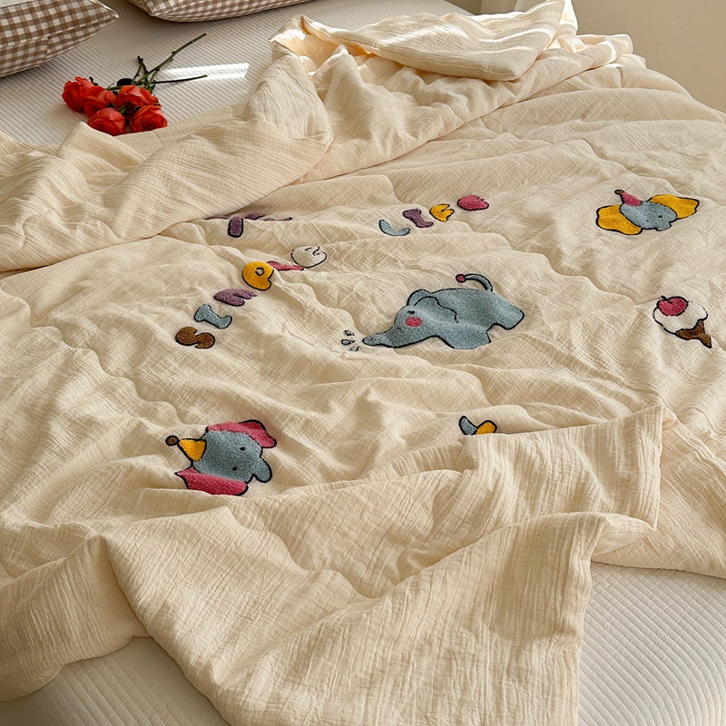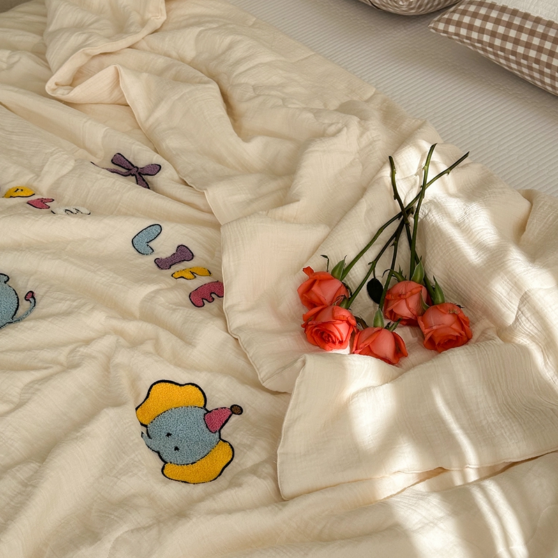 洋铭区(原狠狠爱)2024新款皱皱纱绣花夏被 甜筒小蓝象