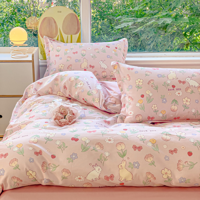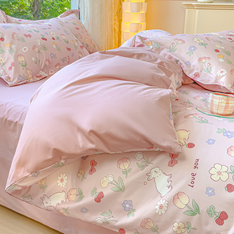 金鑫汇家纺 2024新款全棉纯棉卡通印花四件套单品系列-单被套荷枝桃桃