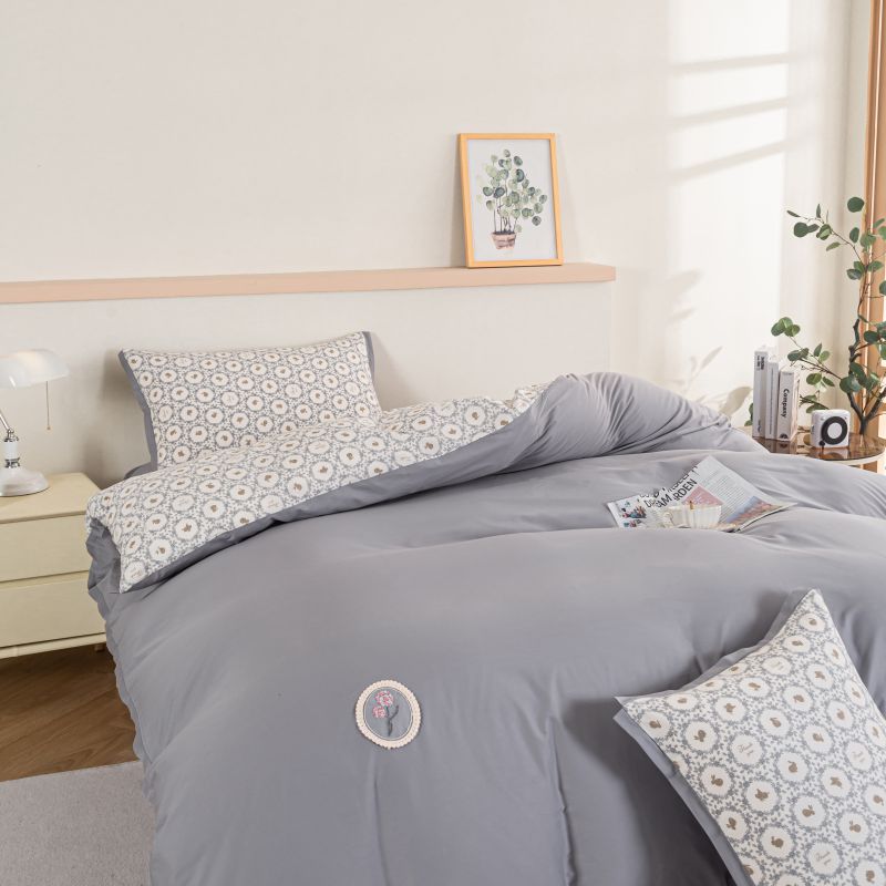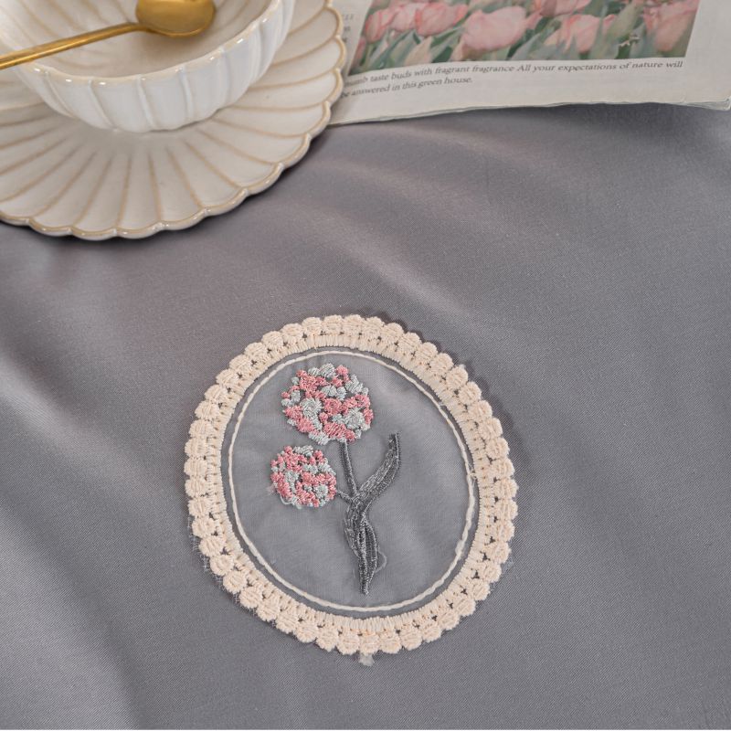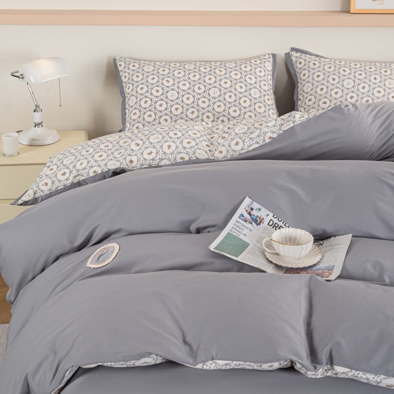 (总)优姿家纺 2026新款全棉拼接绣花四件套,繁花粉,繁花灰,繁花桔,繁花蓝,繁花绿,繁花紫