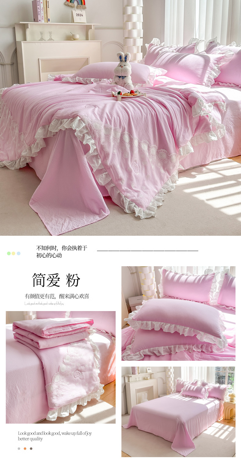 商品名称:唐人居 2025新款韩版花边泡泡纱夏被四件套--简爱 简爱 粉