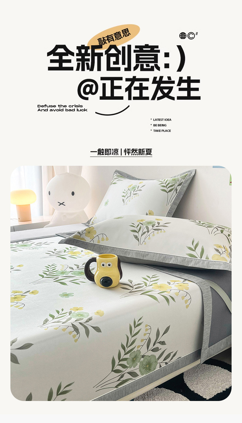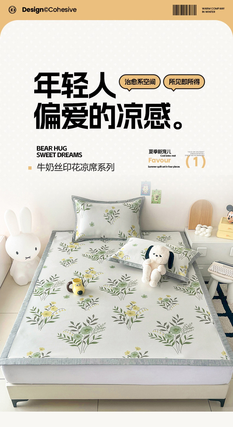 寐居 2024新款时尚印花牛奶丝凉席 仲夏