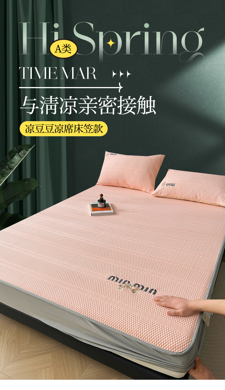 • 91家纺网 家纺一手货源 找家纺 恒爱家纺 2024新款A类精致刺绣凉豆豆床笠款凉席 MINMIN-美人玉