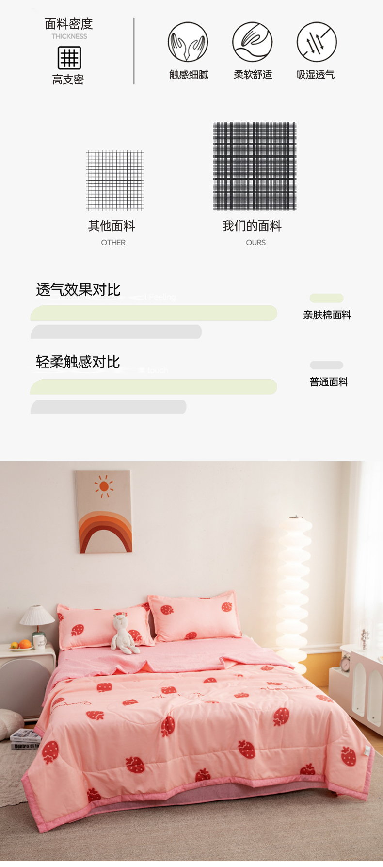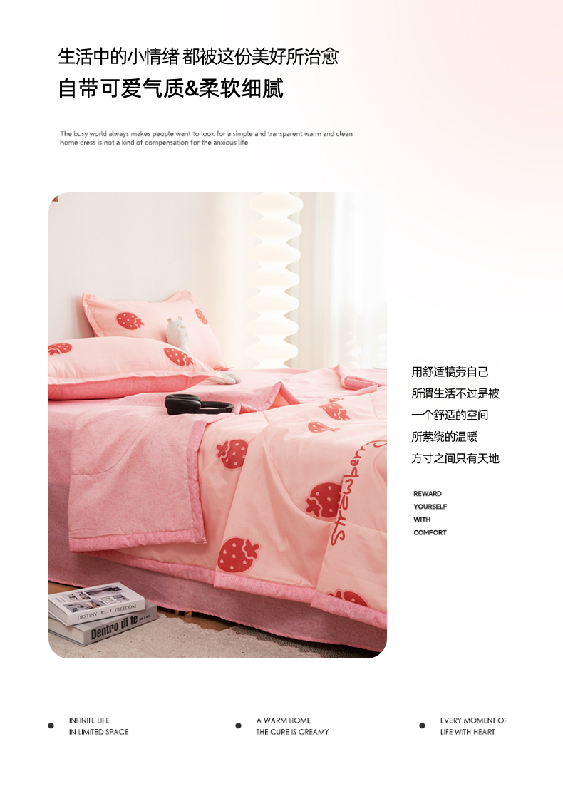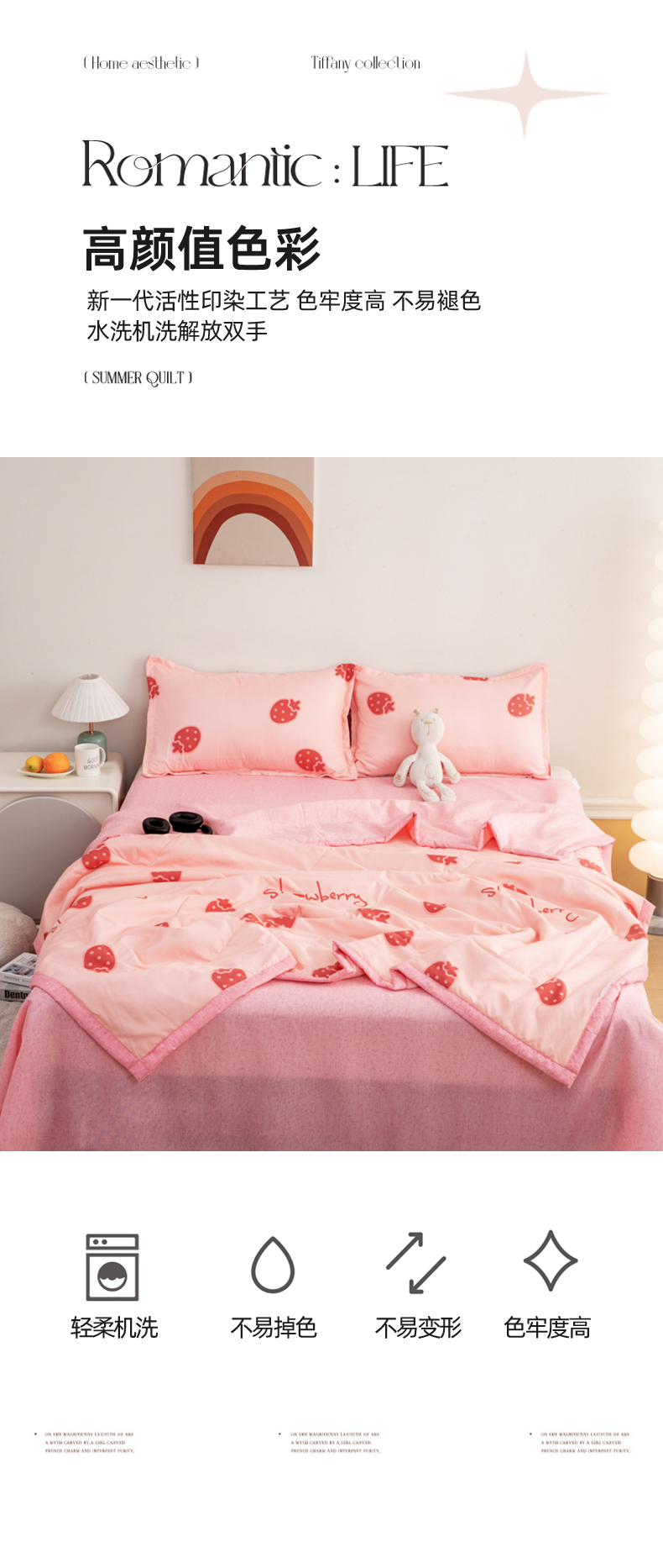 商品名称:乐居坊 2024新款亲肤舒适印花芦荟棉夏凉被四件套 草莓波波