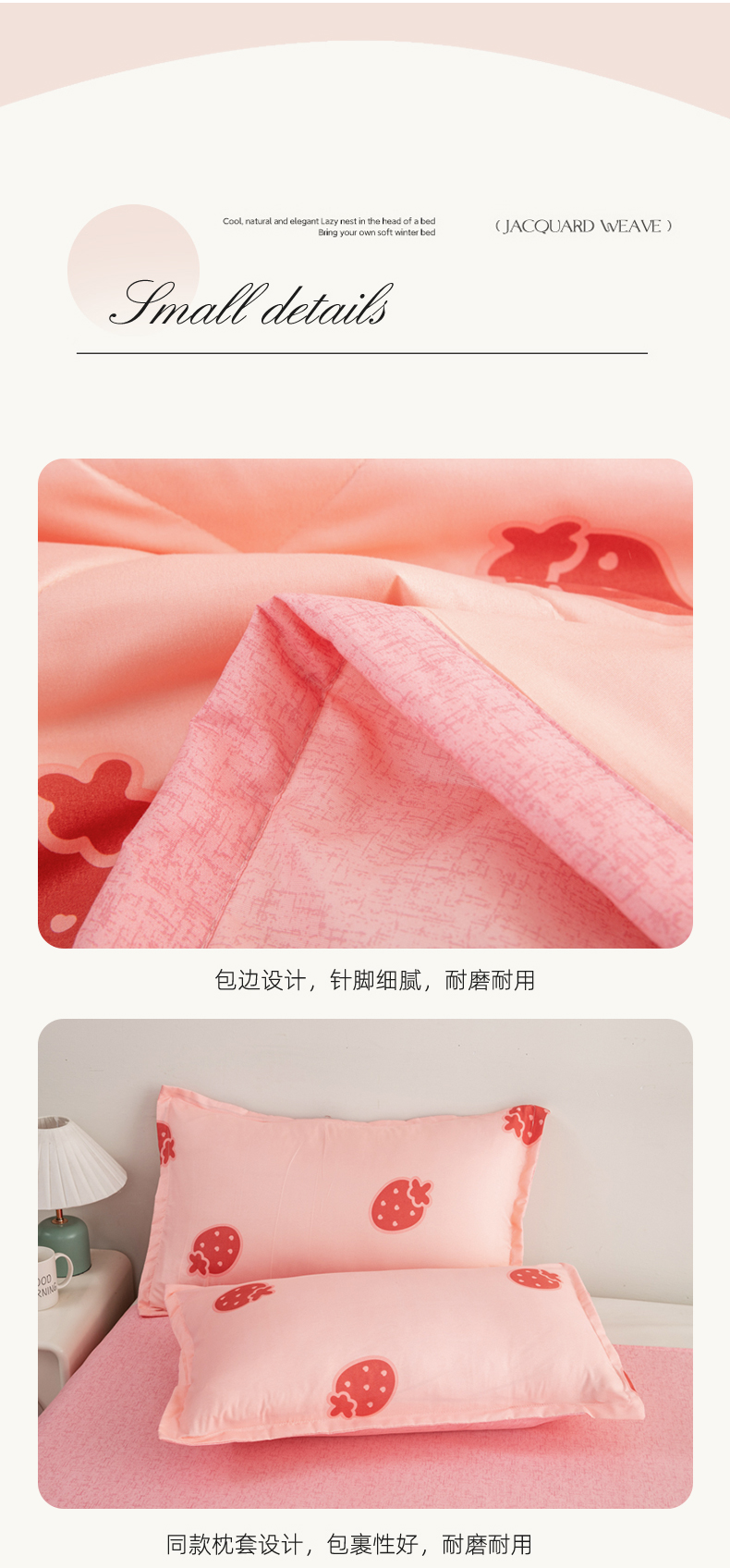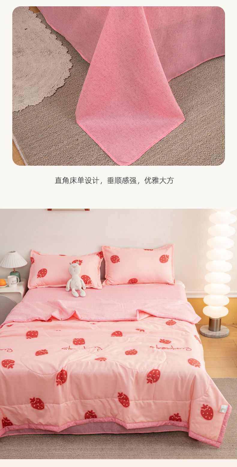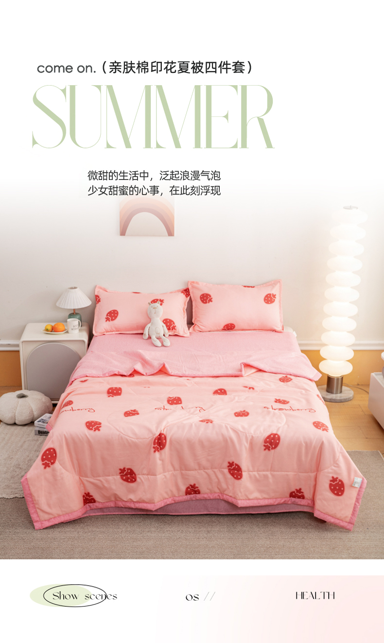 乐居坊 2024新款亲肤舒适印花芦荟棉夏凉被四件套 草莓波波