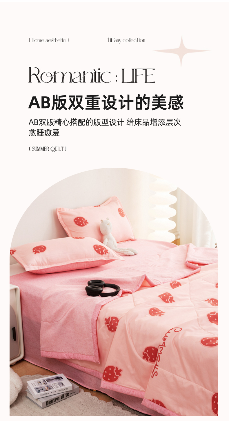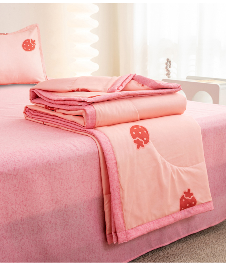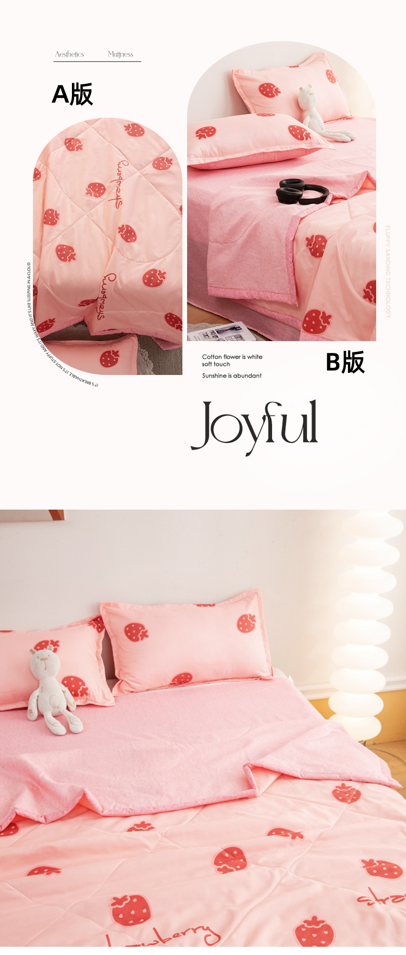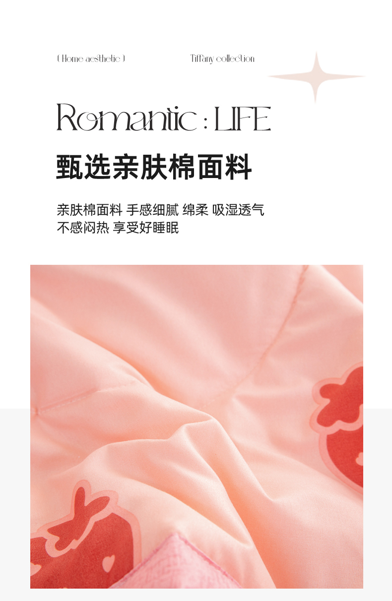 乐居坊 2024新款亲肤舒适印花芦荟棉夏凉被四件套 草莓波波