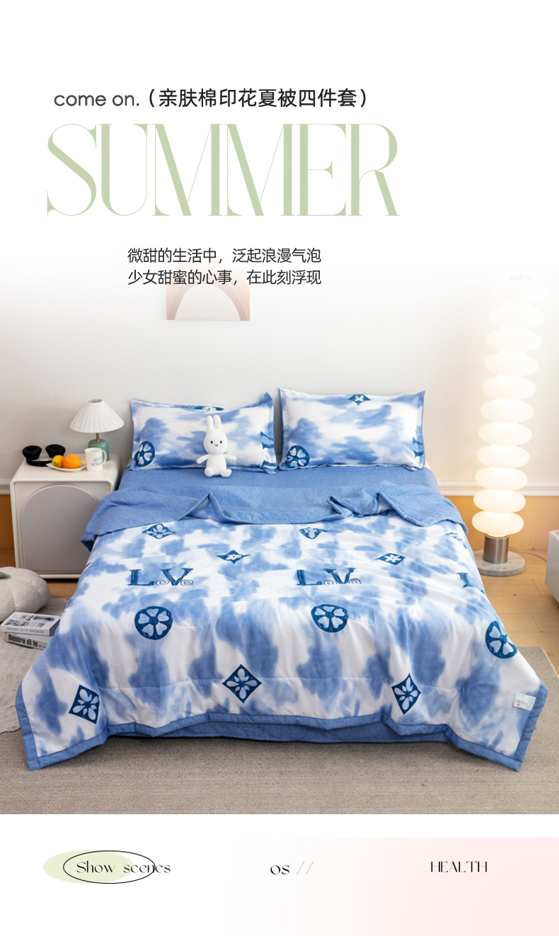 乐居坊 2024新款亲肤舒适印花芦荟棉夏凉被四件套 梦幻都市