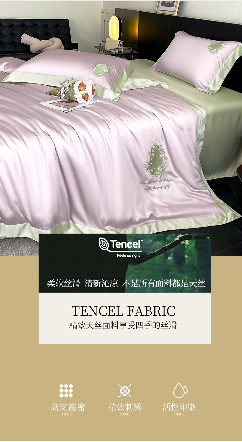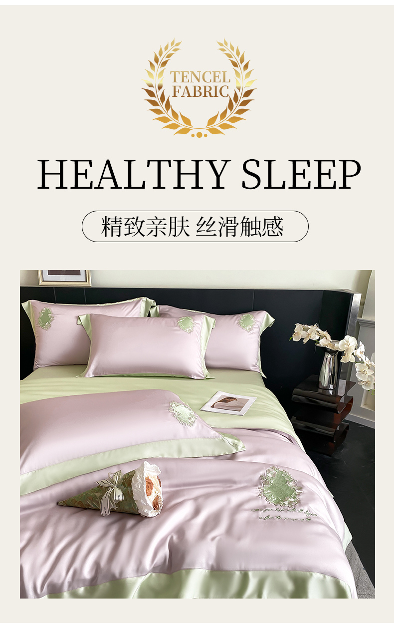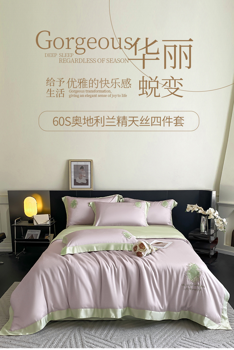 (总)爱缦 新款60支莱赛尔四件套-至真系列,蓝米驼,米白粉,浅紫,玉粉