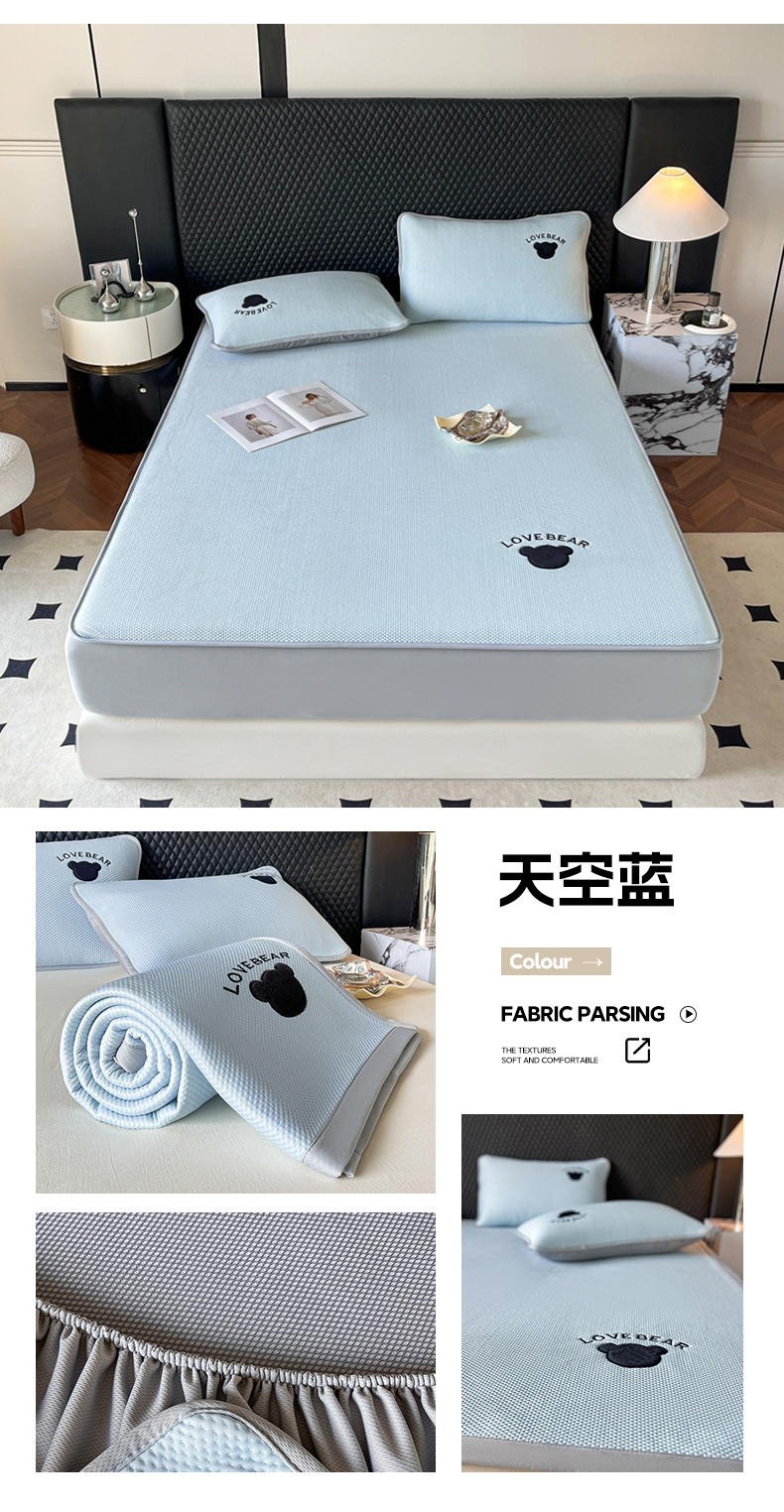 子曰 2024新款PE中分子凉席 天空蓝床笠款