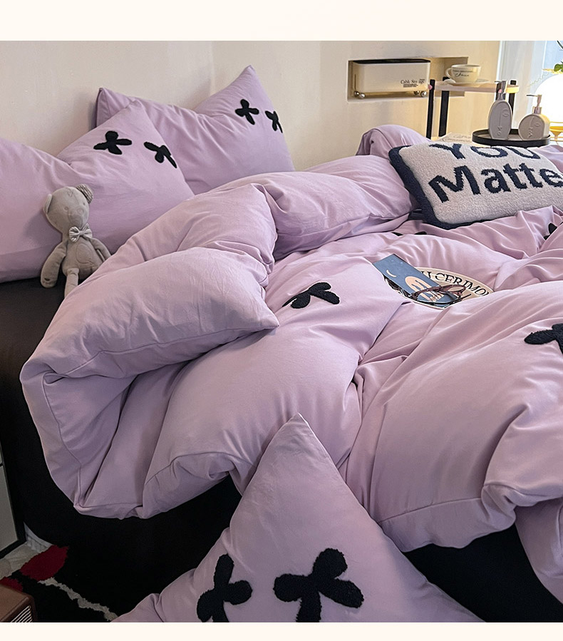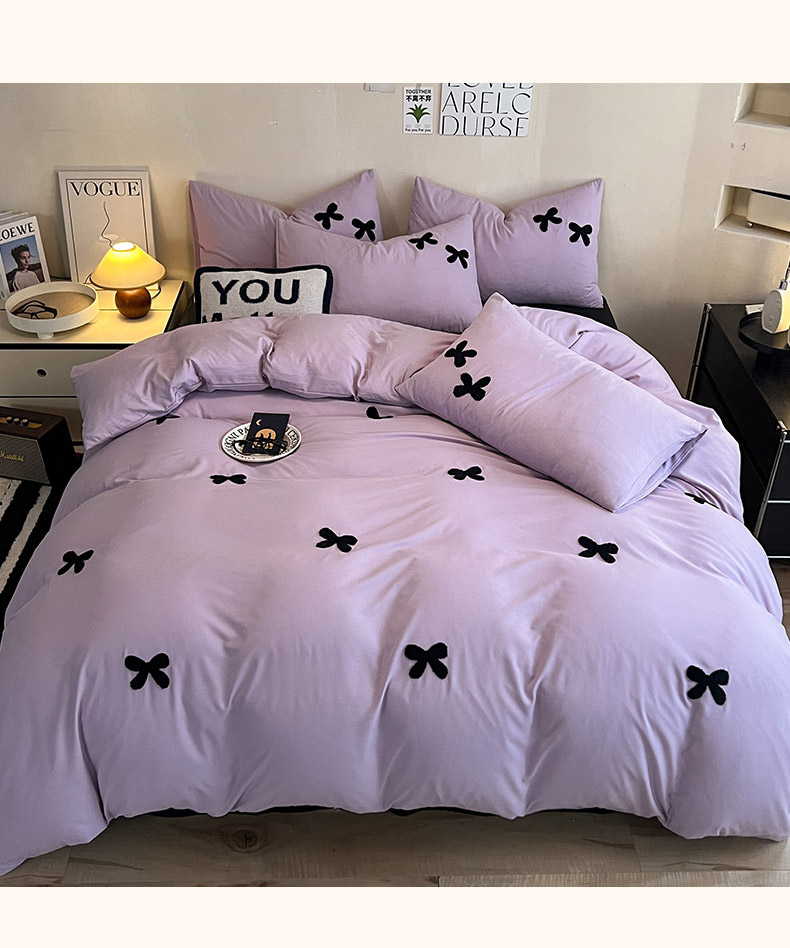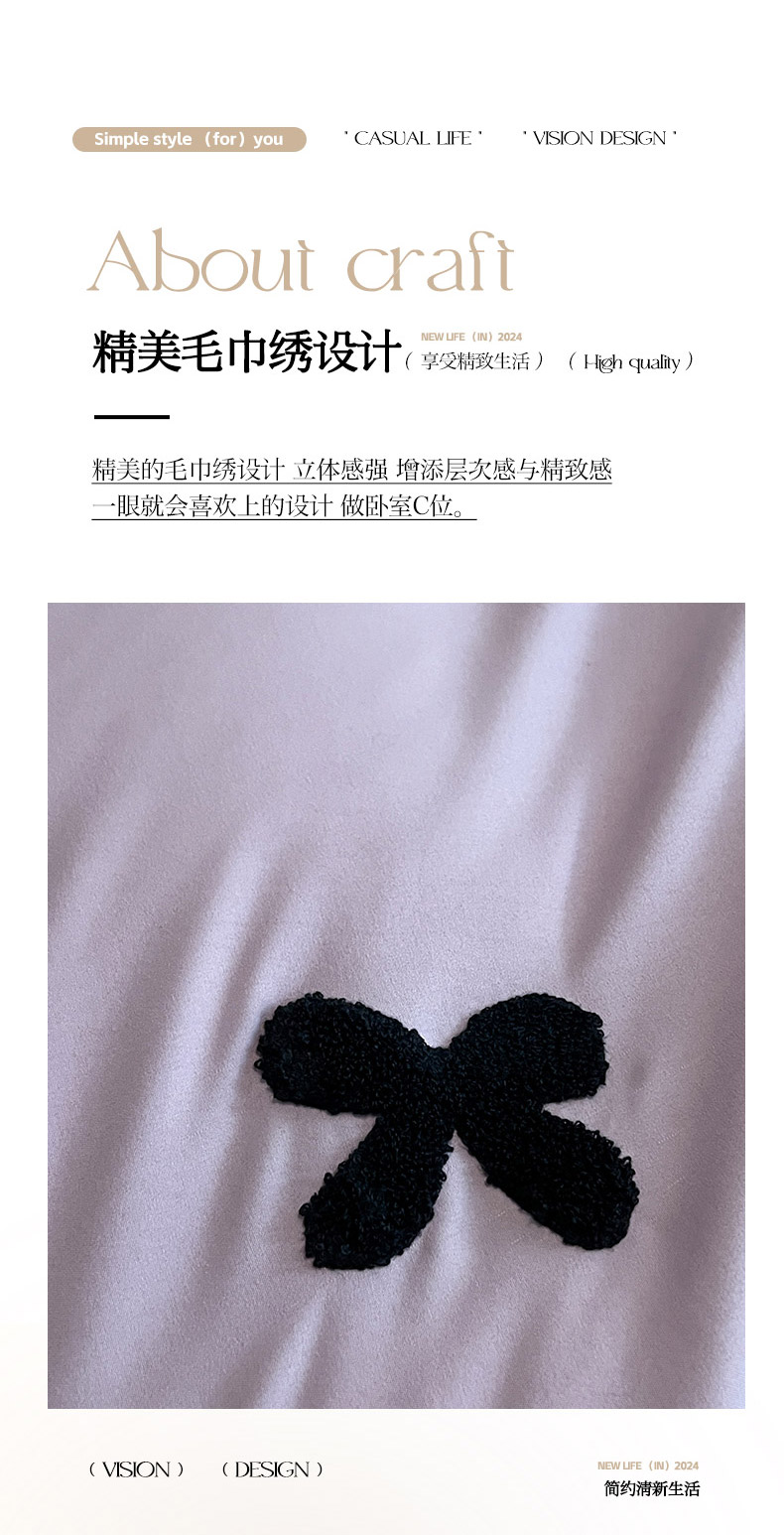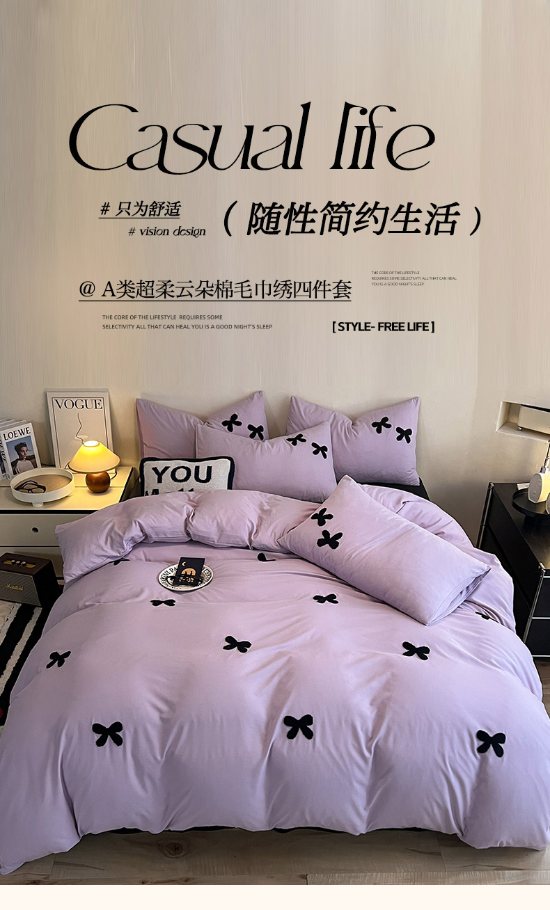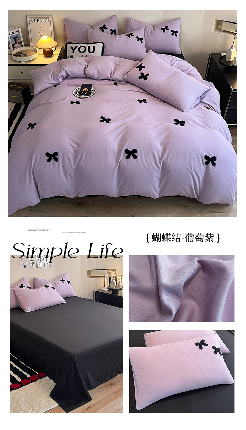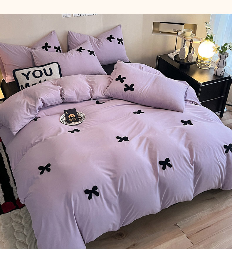商品名称:2024新款超柔云朵棉毛巾绣四件套 蝴蝶结-葡萄紫