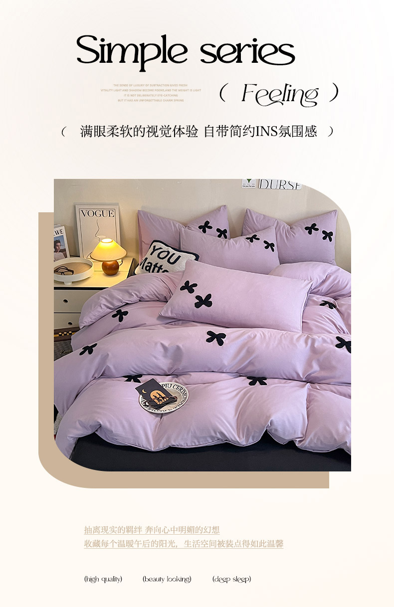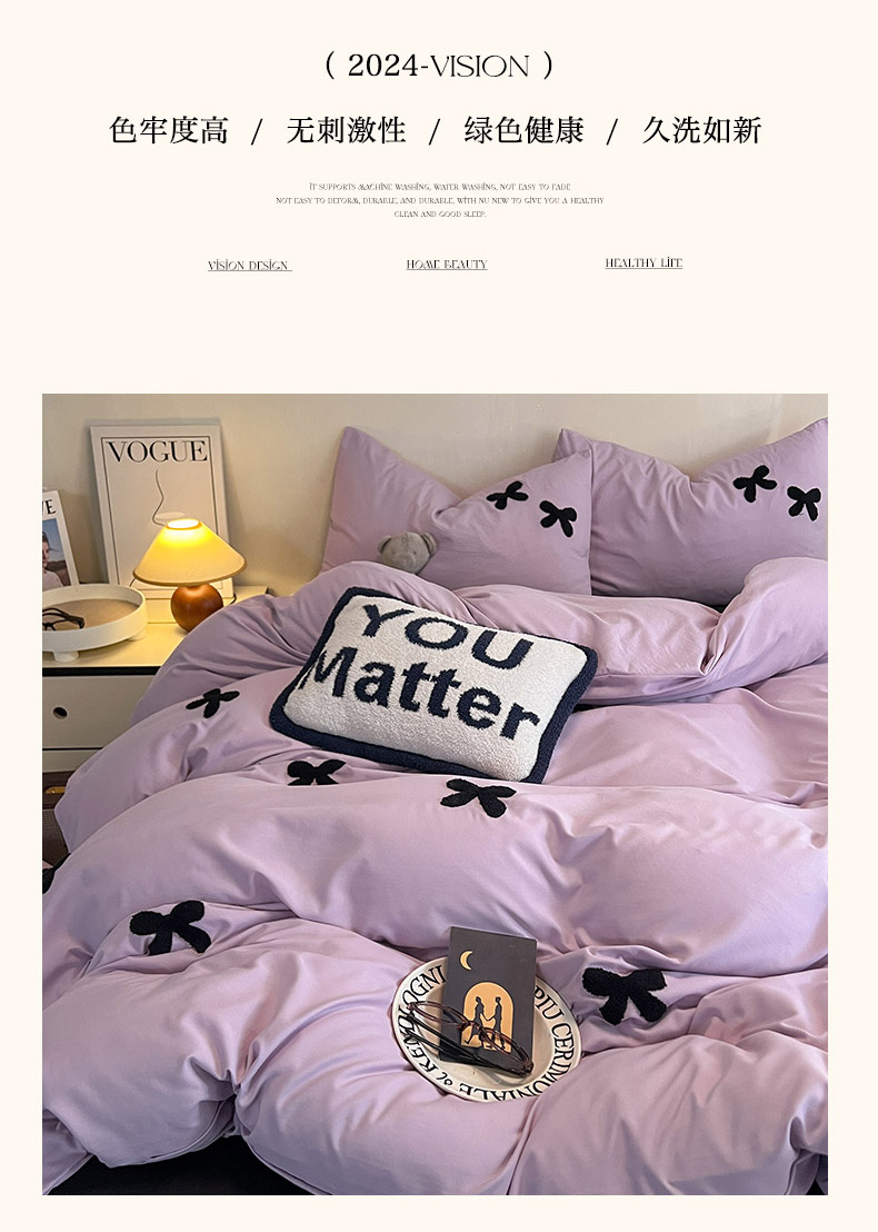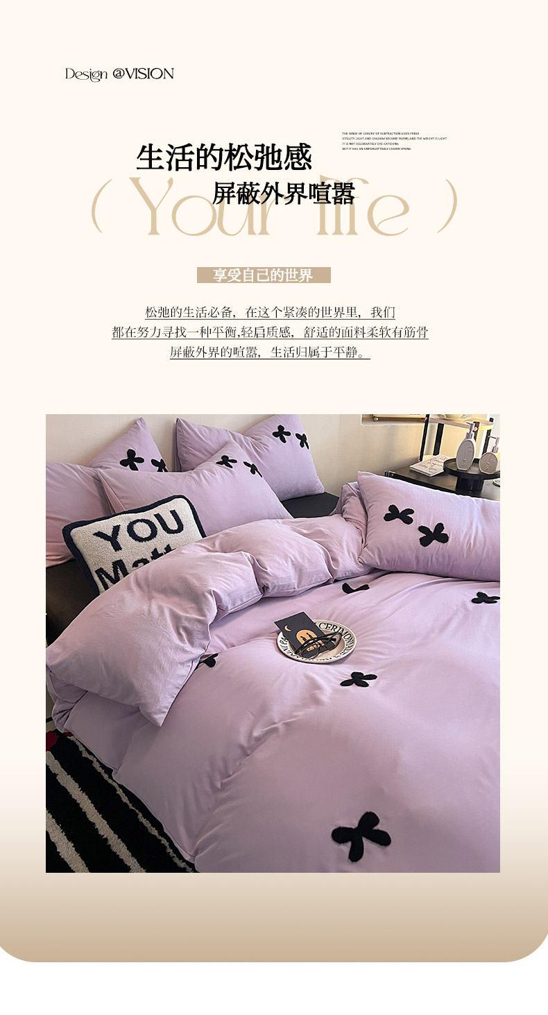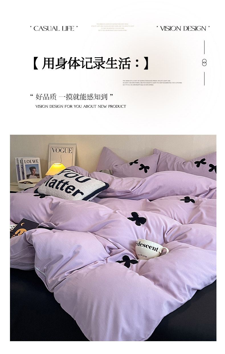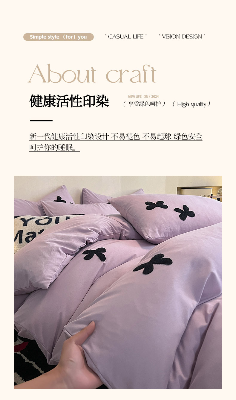 商品名称:2024新款超柔云朵棉毛巾绣四件套 蝴蝶结-葡萄紫