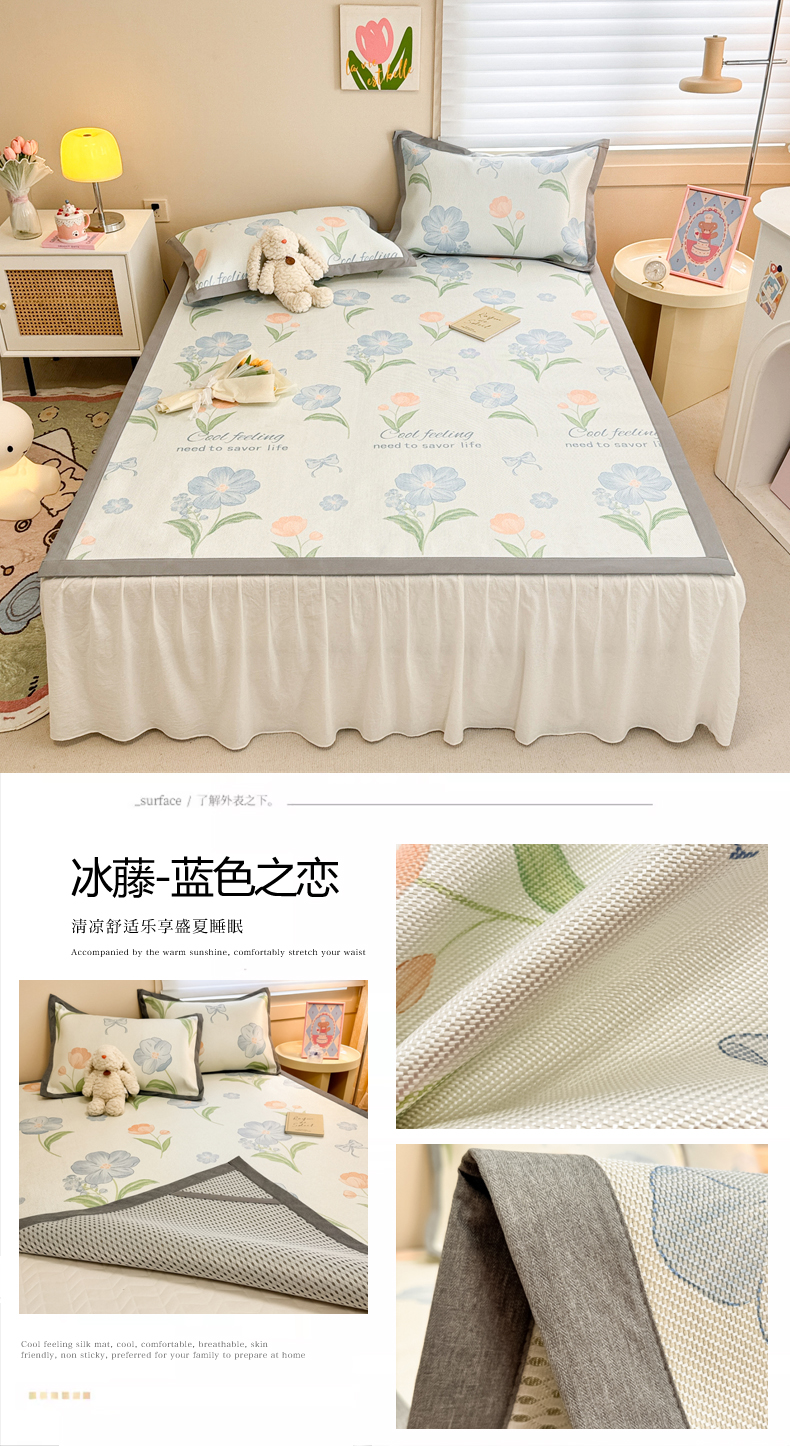 沐慕 2024新款小清新印花冰藤席空调席系列 冰藤-蓝色之恋