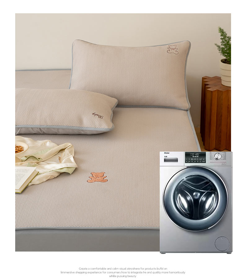FORTWO家纺原创设计(FOR TWO家纺) 2024新款绣花凉席系列 开心小熊-灰