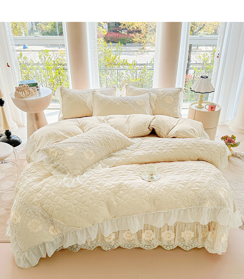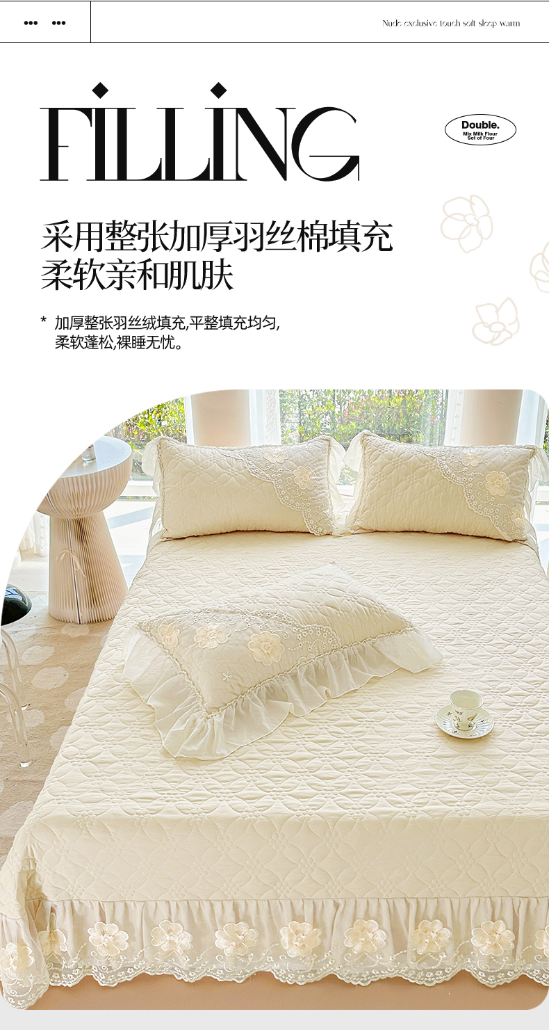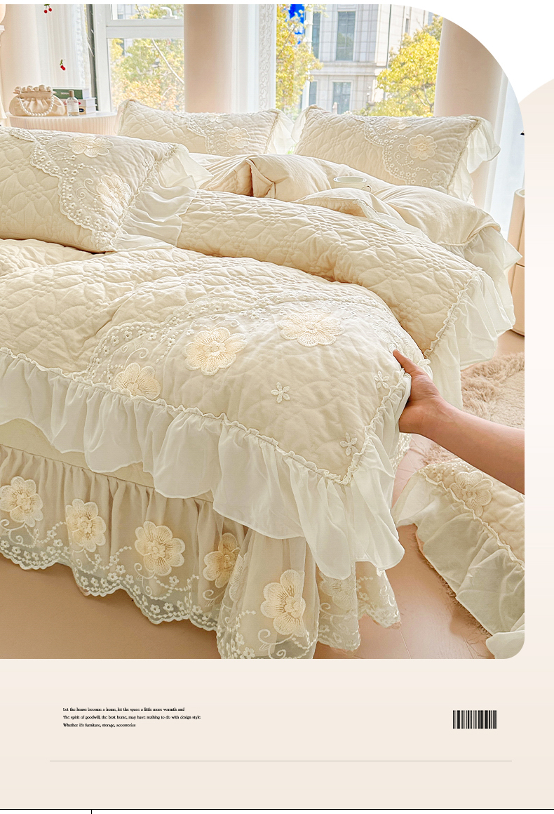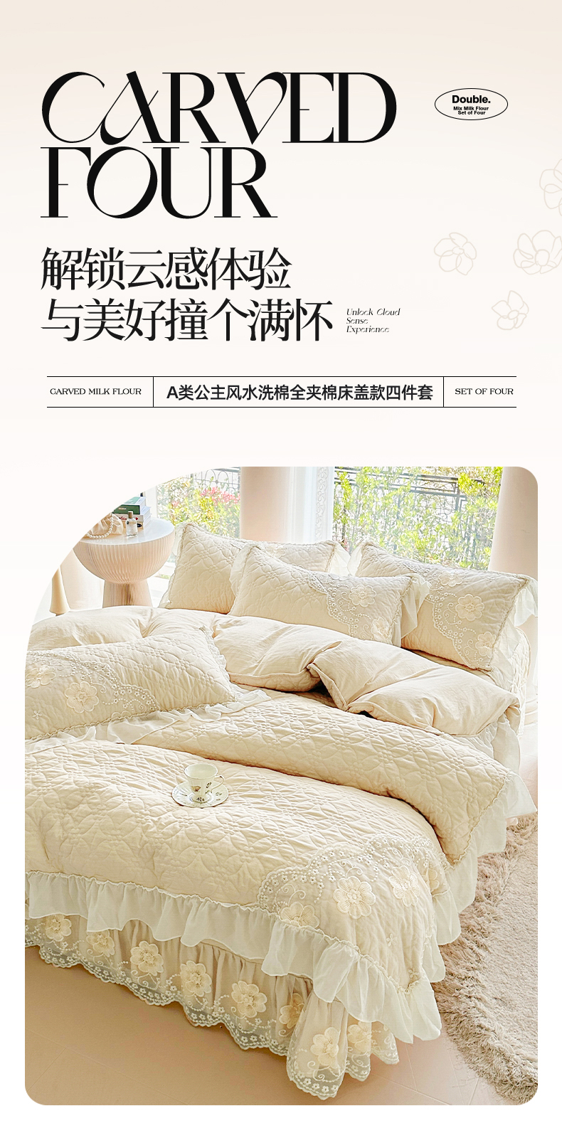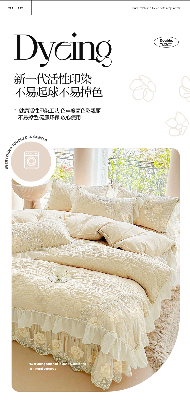 商品名称:罗艺轩 2024新款公主风水洗棉全夹棉床盖款四件套-盛宴 盛宴-牛乳白