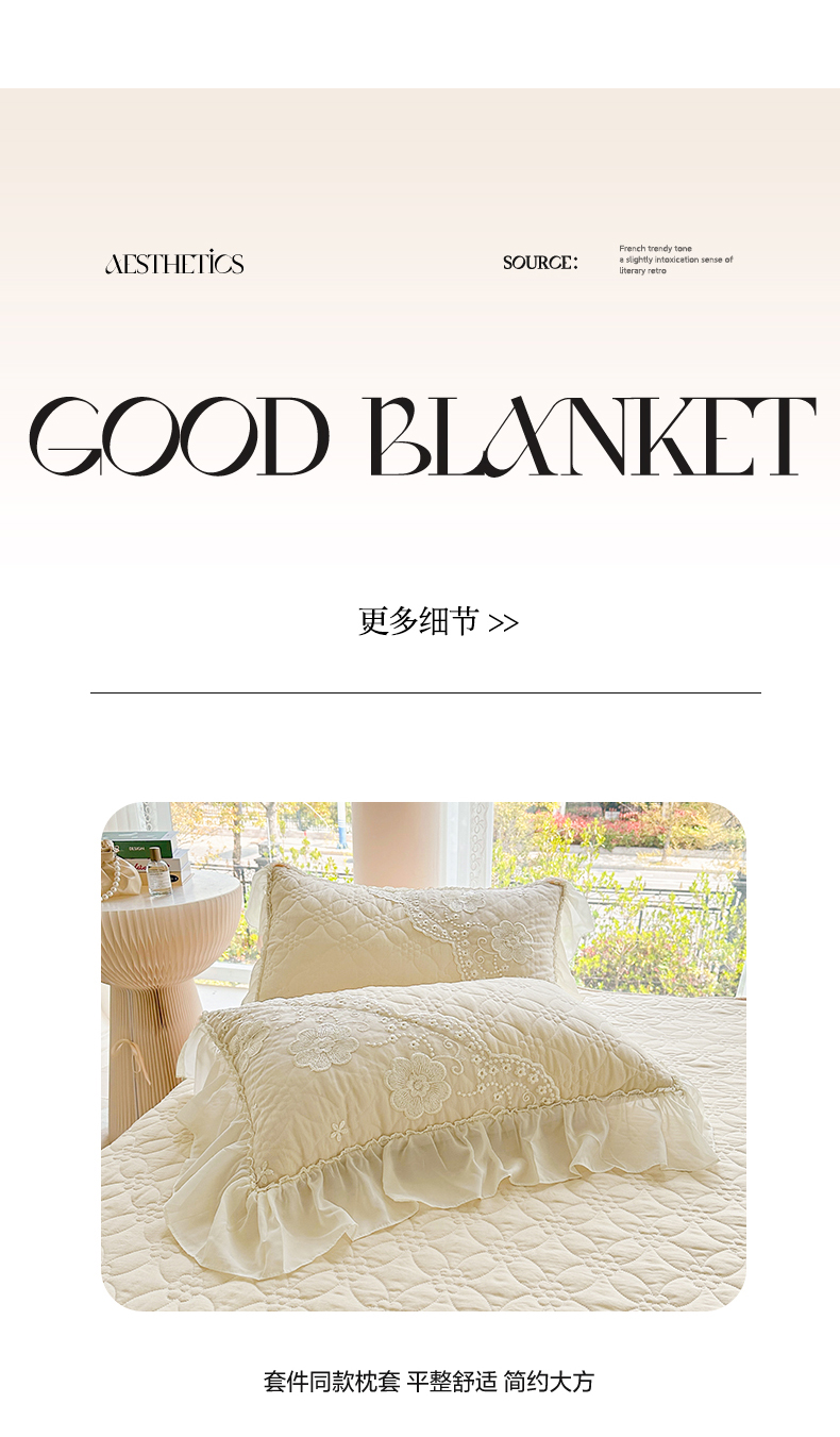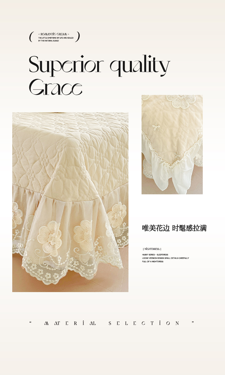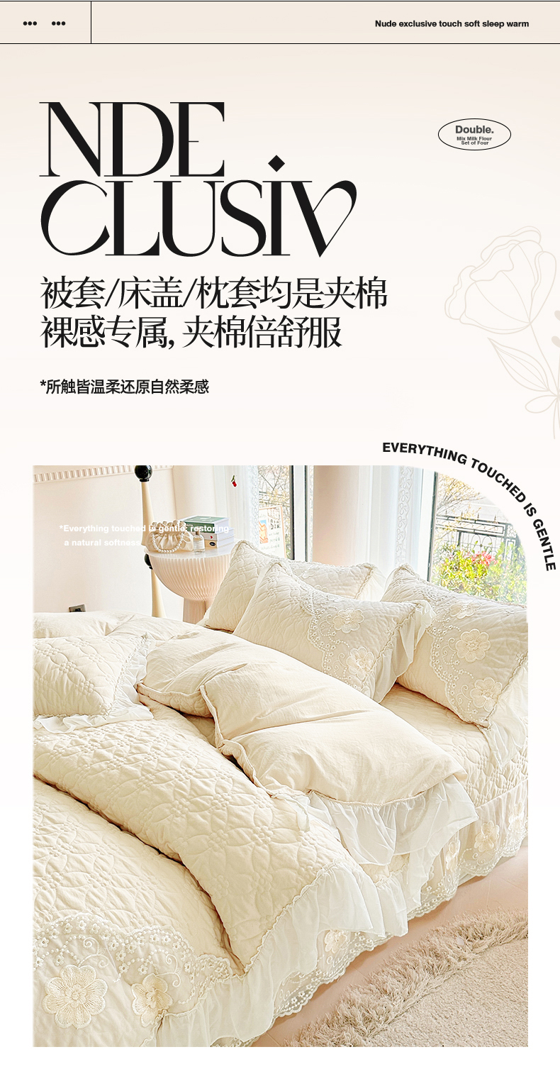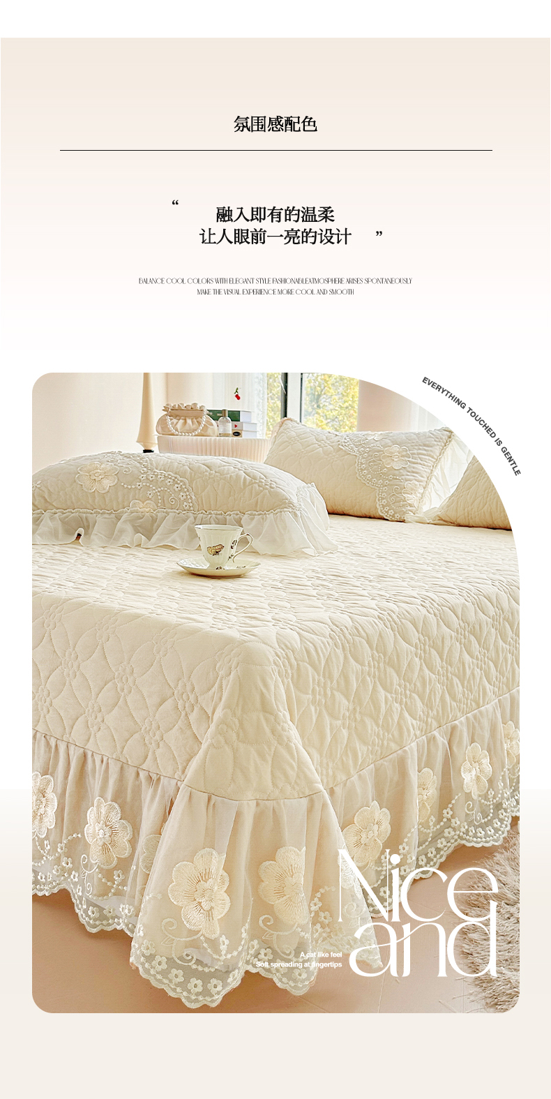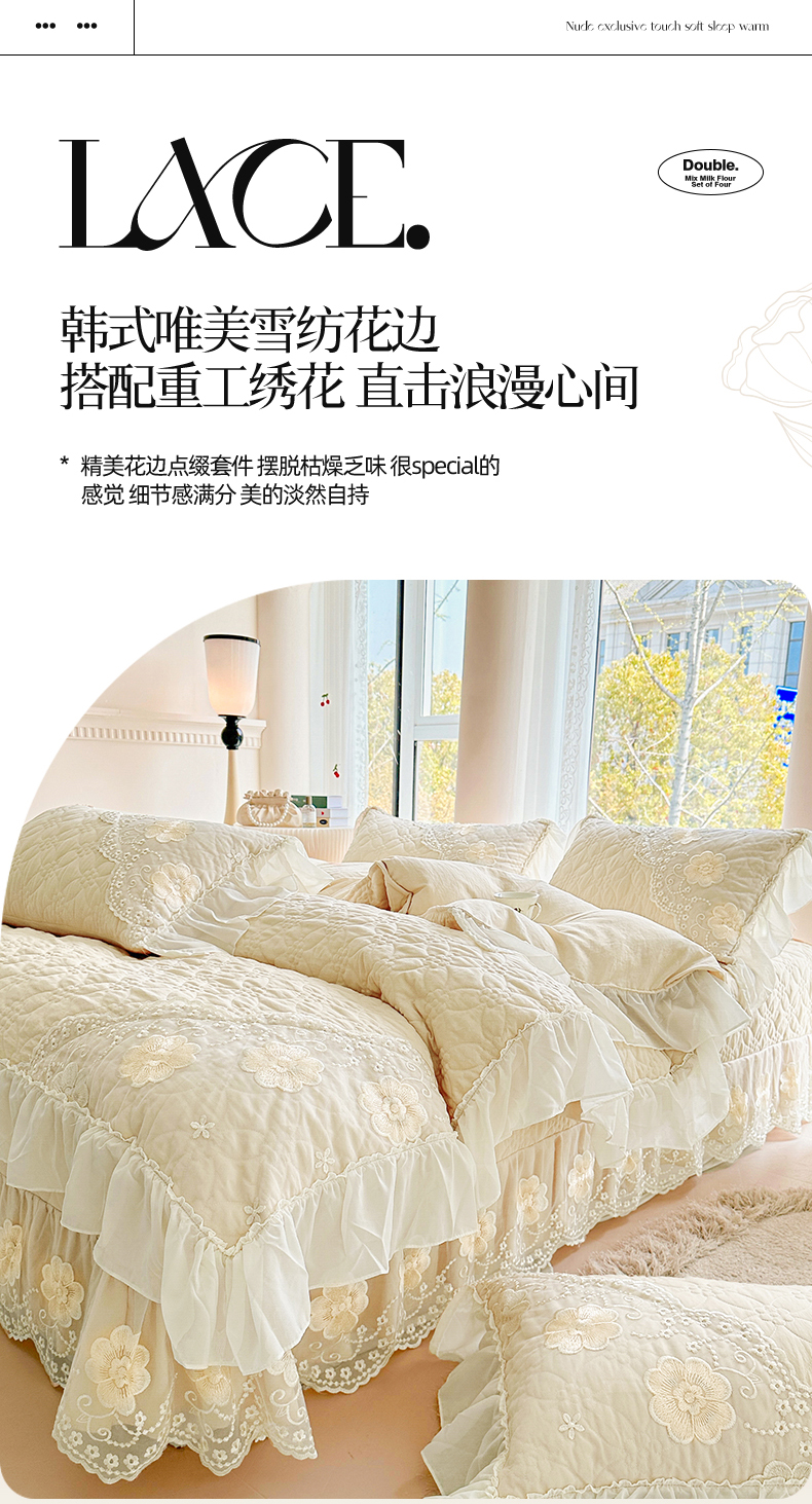 商品名称:罗艺轩 2024新款公主风水洗棉全夹棉床盖款四件套-盛宴 盛宴-牛乳白