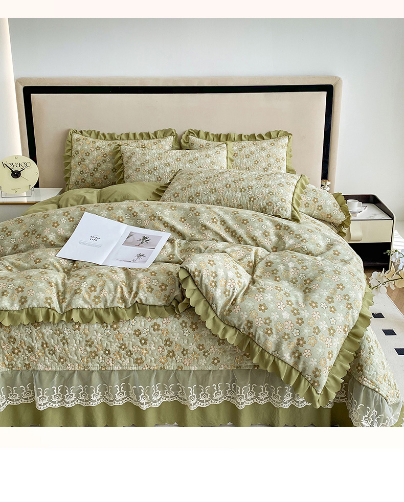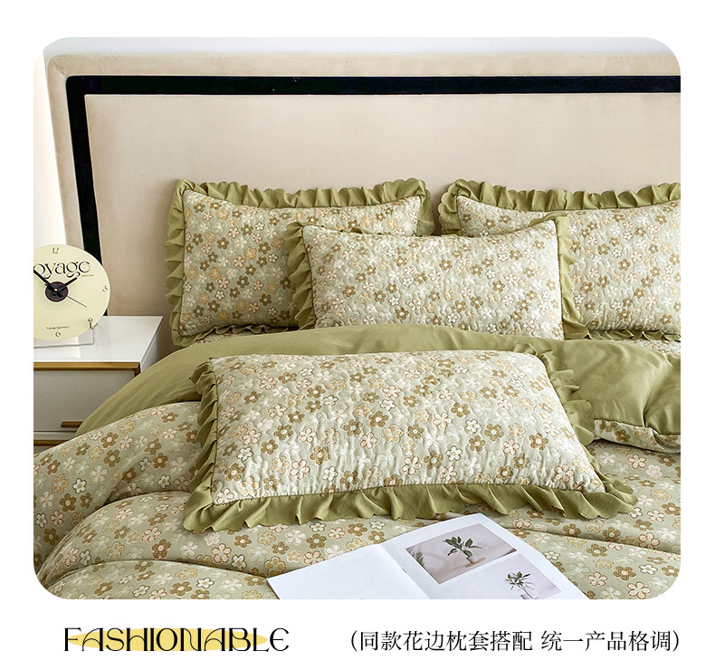 艺慕家纺 2025新款水洗棉麻双层纱夏被床盖四件套 绿藤花语,绿藤花语