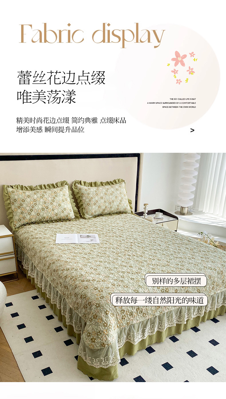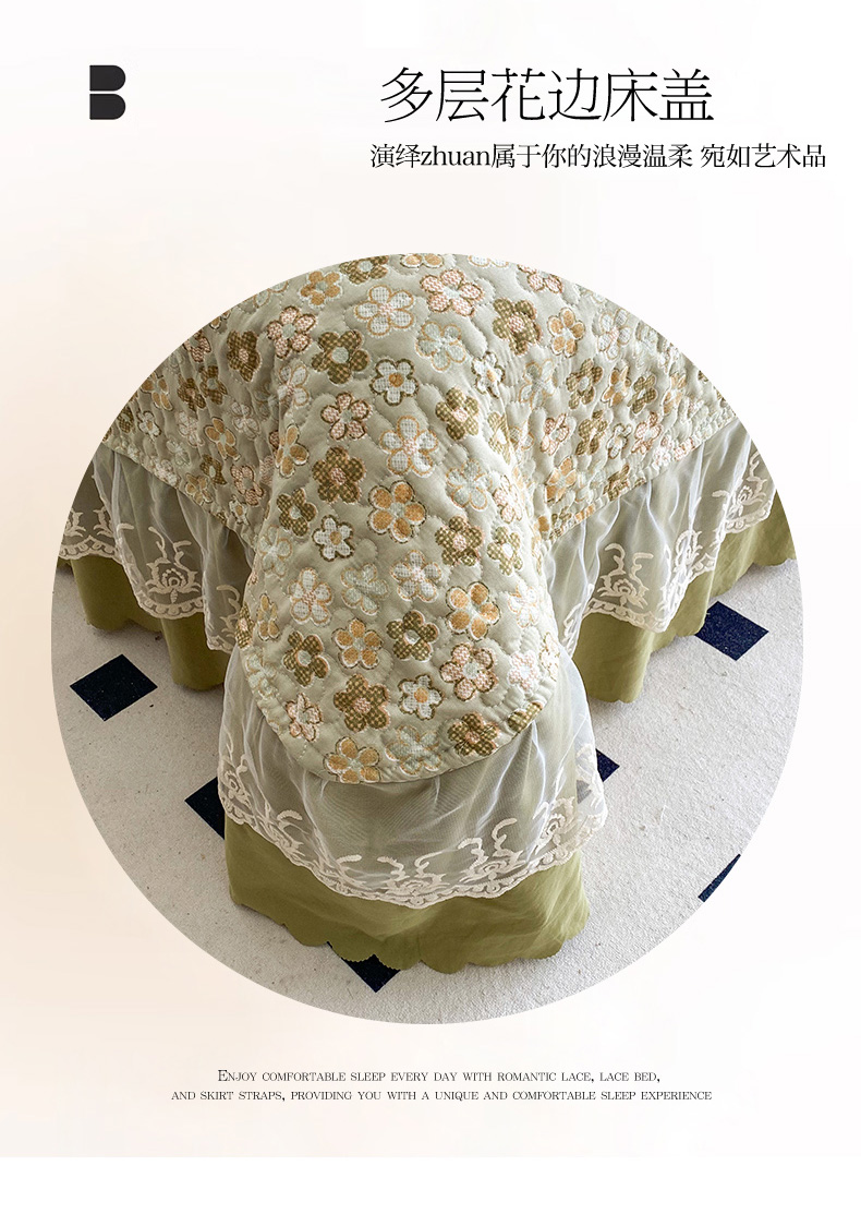 (总)艺慕 2025款双层蕾丝大花边床盖,花镜, 温婉,梦兰,萌兔, 甜心, 樱桃, 真爱, 文青,花涧, 静秋,秋恋, 森绿,绿藤花语,幽梦青萝,紫菱花园