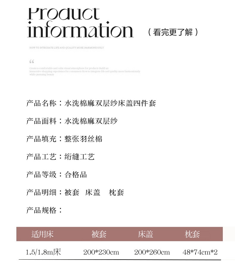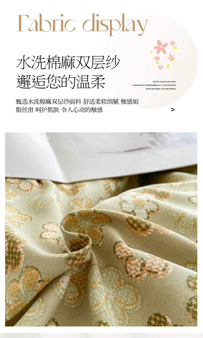 商品名称:艺慕家纺 2025新款水洗棉麻双层纱床盖四件套 春意