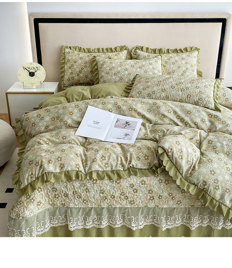 艺慕 2025款双层蕾丝大花边床盖 紫菱花园,紫菱花园