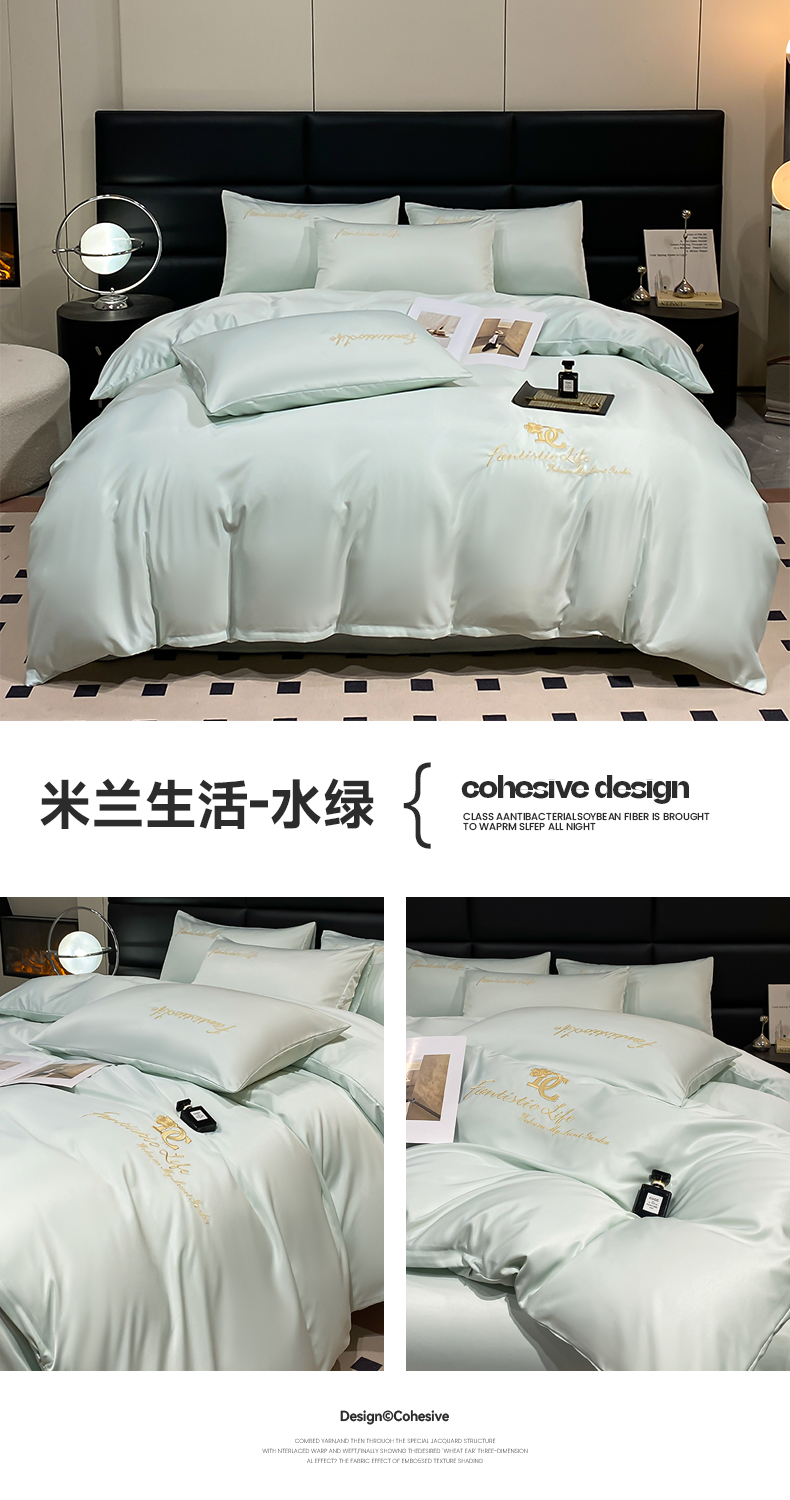 商品名称:澳梵 2024新款水洗真丝刺绣四件套 米兰生活-水绿