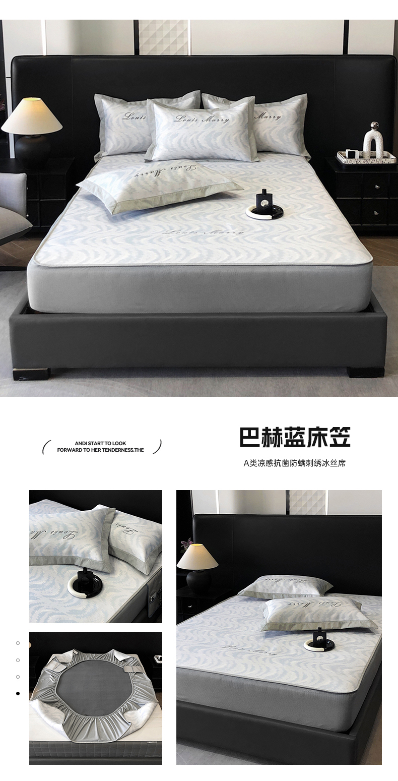 商品名称:三味舒屋 2025新款凉感抗菌防螨刺绣冰丝席(新升级7A抗菌)--巴赫 巴赫蓝-床笠款