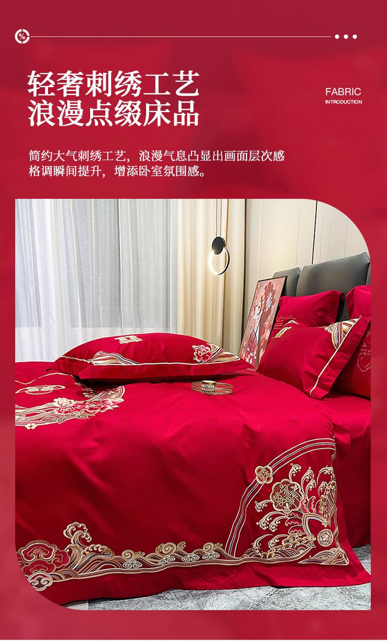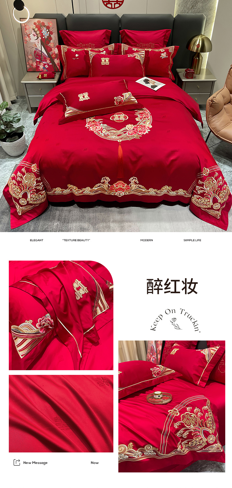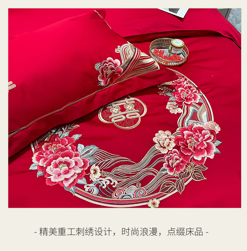 卓缦家纺 2024新款全棉刺绣提花四件套 醉红妆