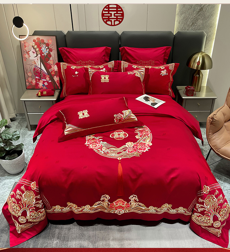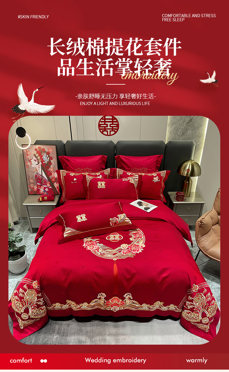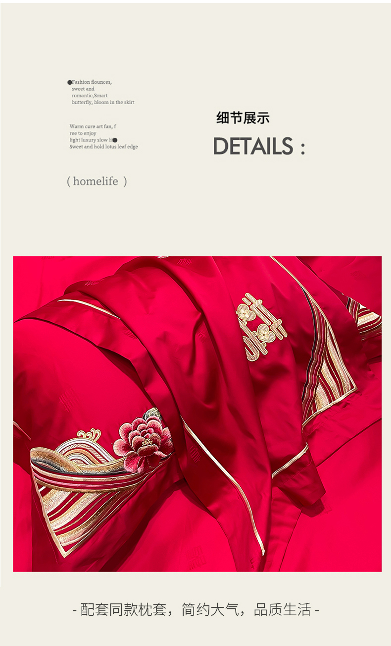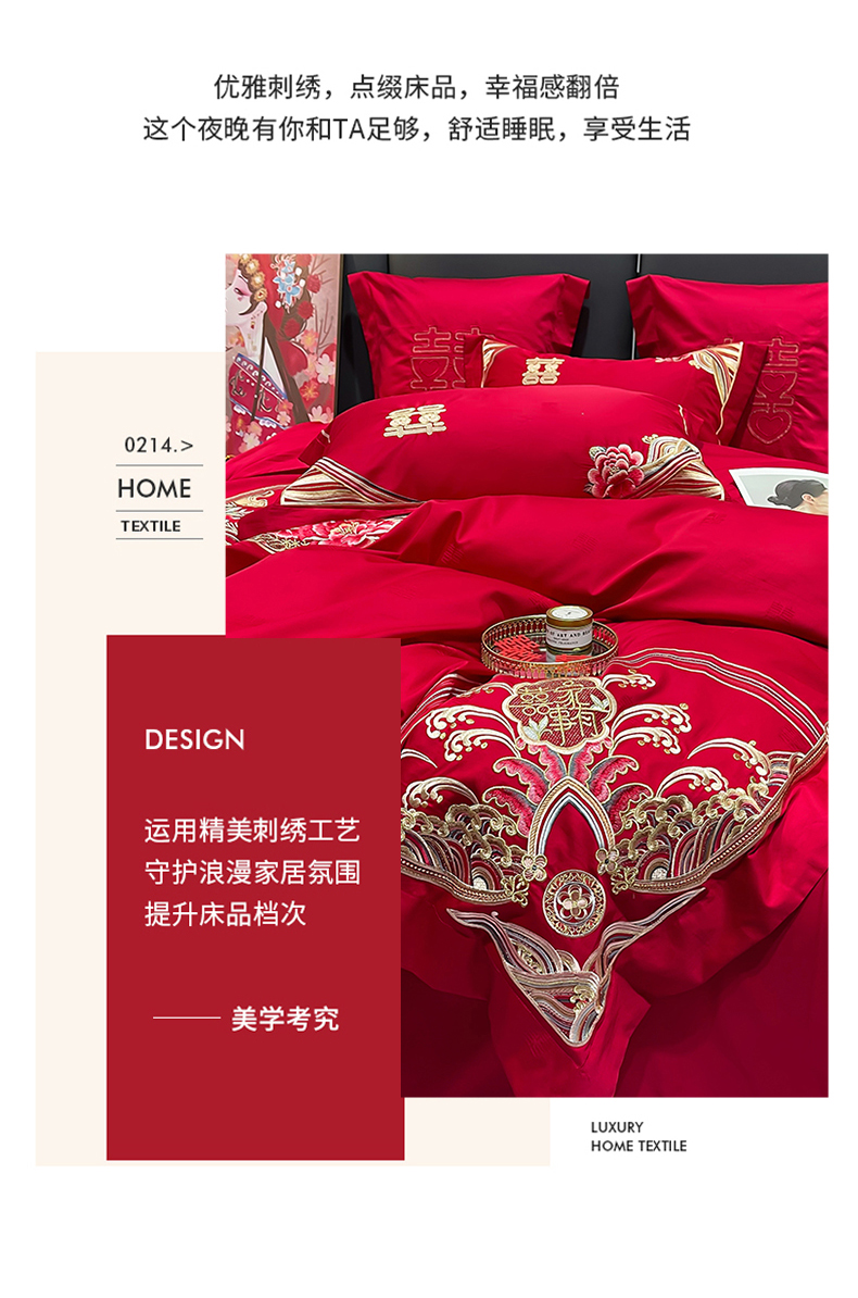 卓缦家纺 2024新款全棉刺绣提花四件套 醉红妆