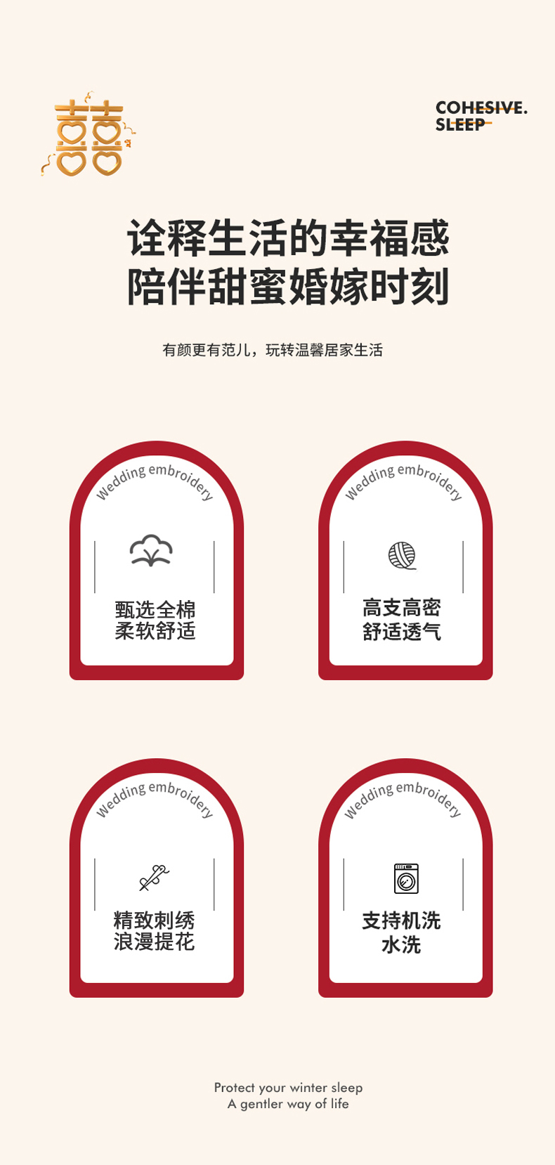 (总)卓缦家纺 2024新款亲肤棉磨毛婚庆刺绣喜被大豆被冬被 控价+45元,福喜盈门,家有喜事,喜事连连,时尚款包装