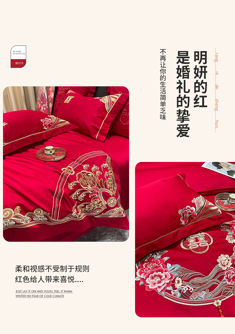 (总)卓缦家纺 2025新款提花刺绣婚庆四件套(控价50+),热情玫瑰,喜悦,永恒