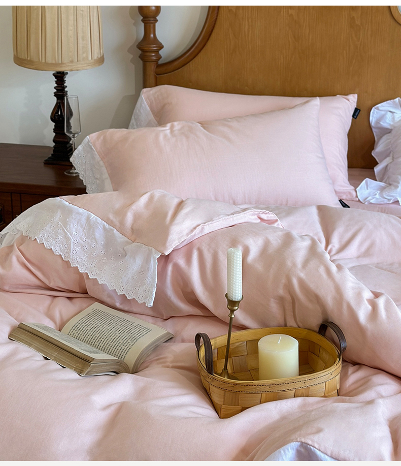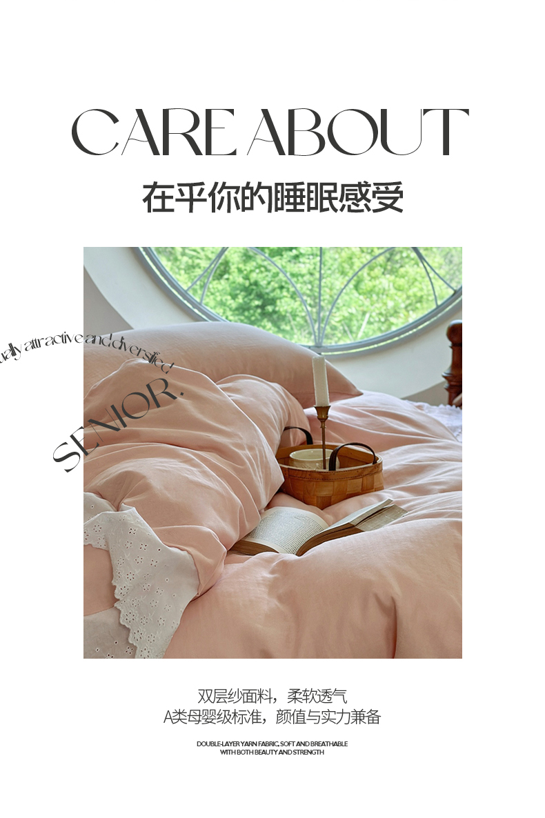(总)窝米 2024新款全棉轻氧纱蕾丝花边款四件套系列