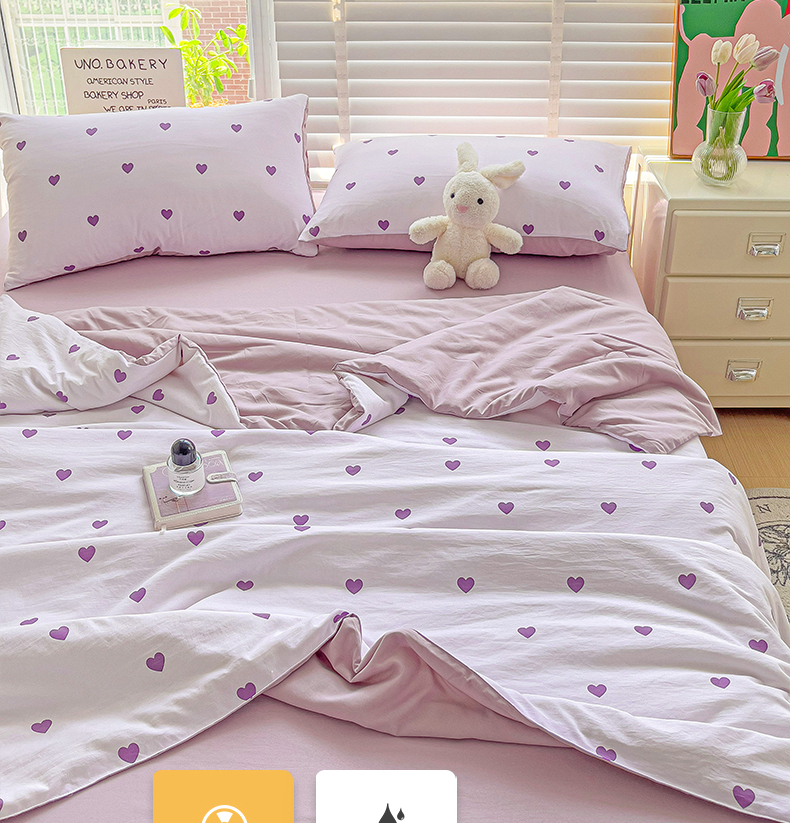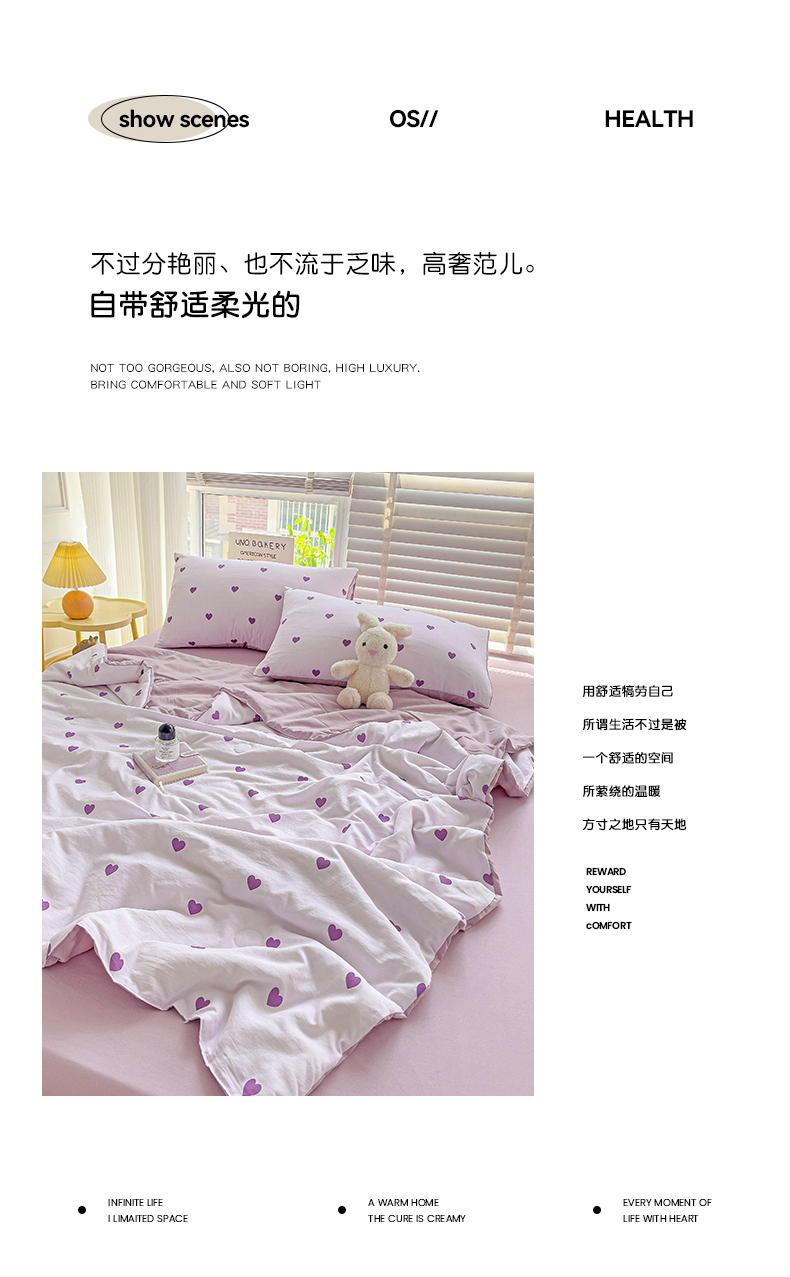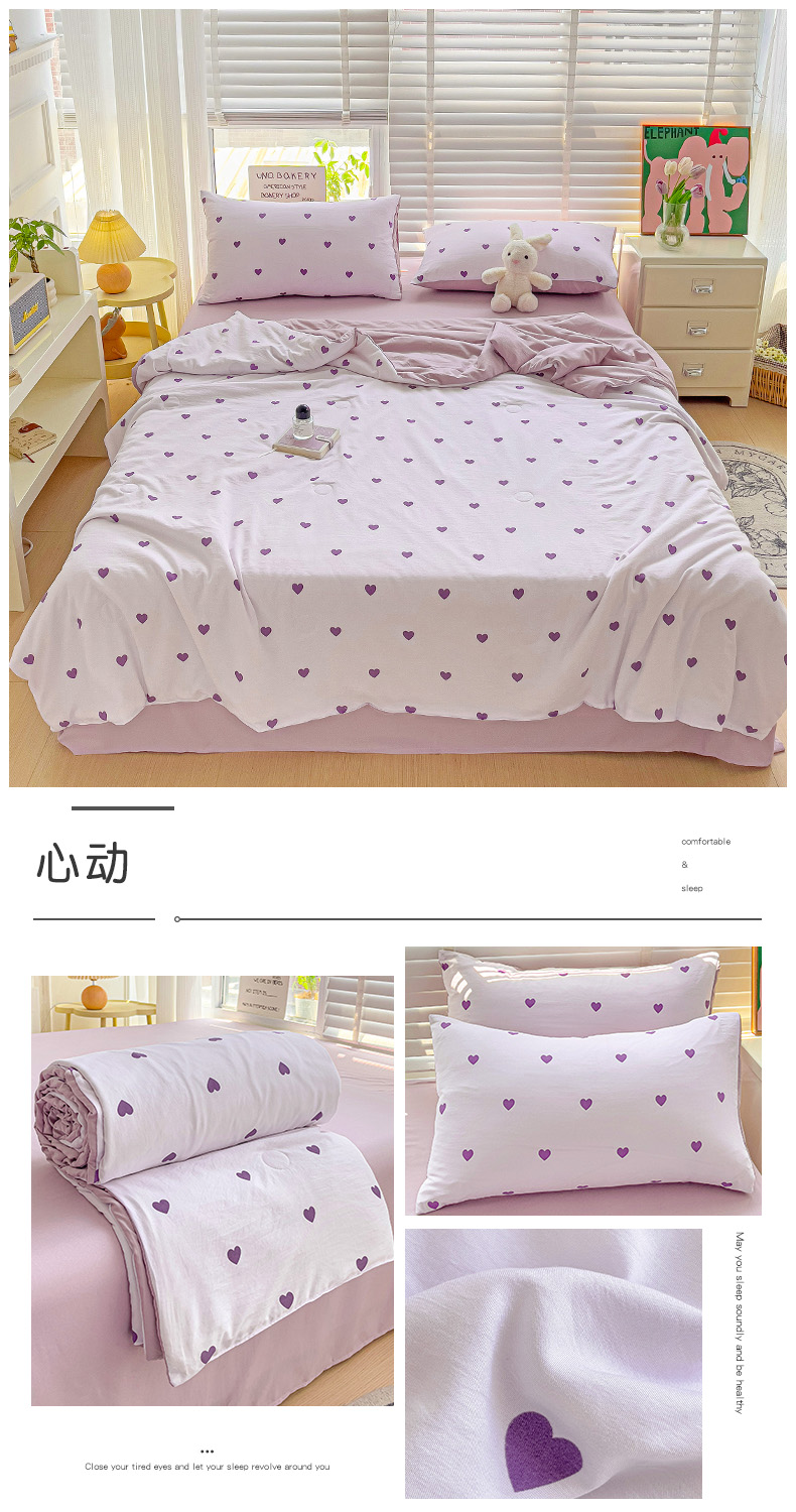 商品名称:优选 2025直播爆款水洗皱皱夏被四件套空调被芯三件套春秋被子 心动