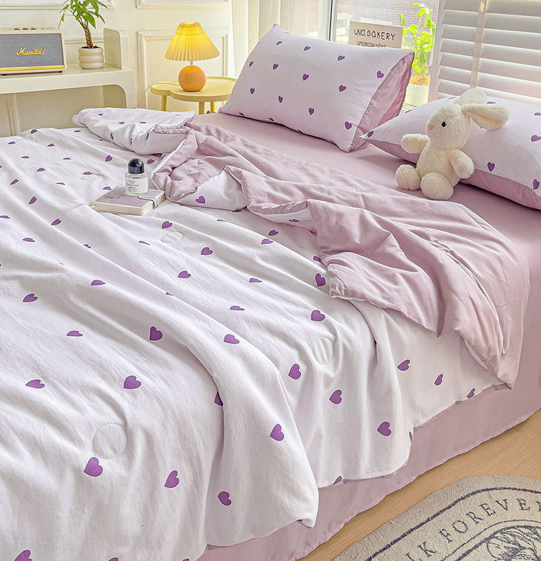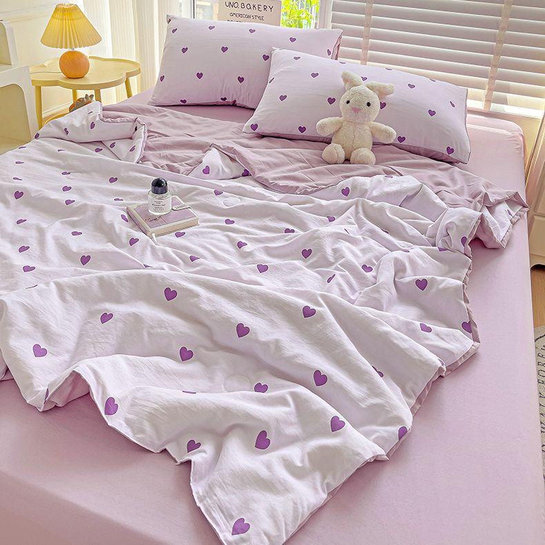 优选 2025直播爆款水洗皱皱夏被四件套空调被芯三件套春秋被子 心动