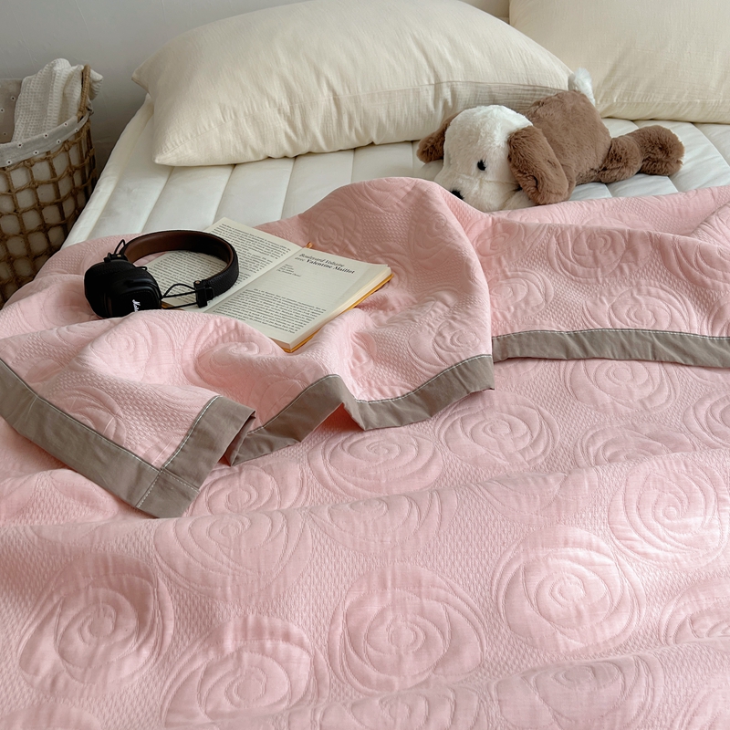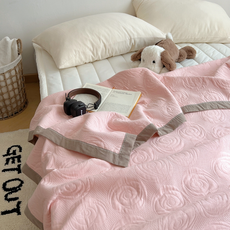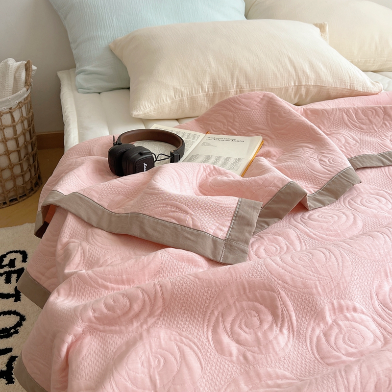 商品名称:桃喜 2024新款A类全棉提花三层纱夏被 提花玫瑰