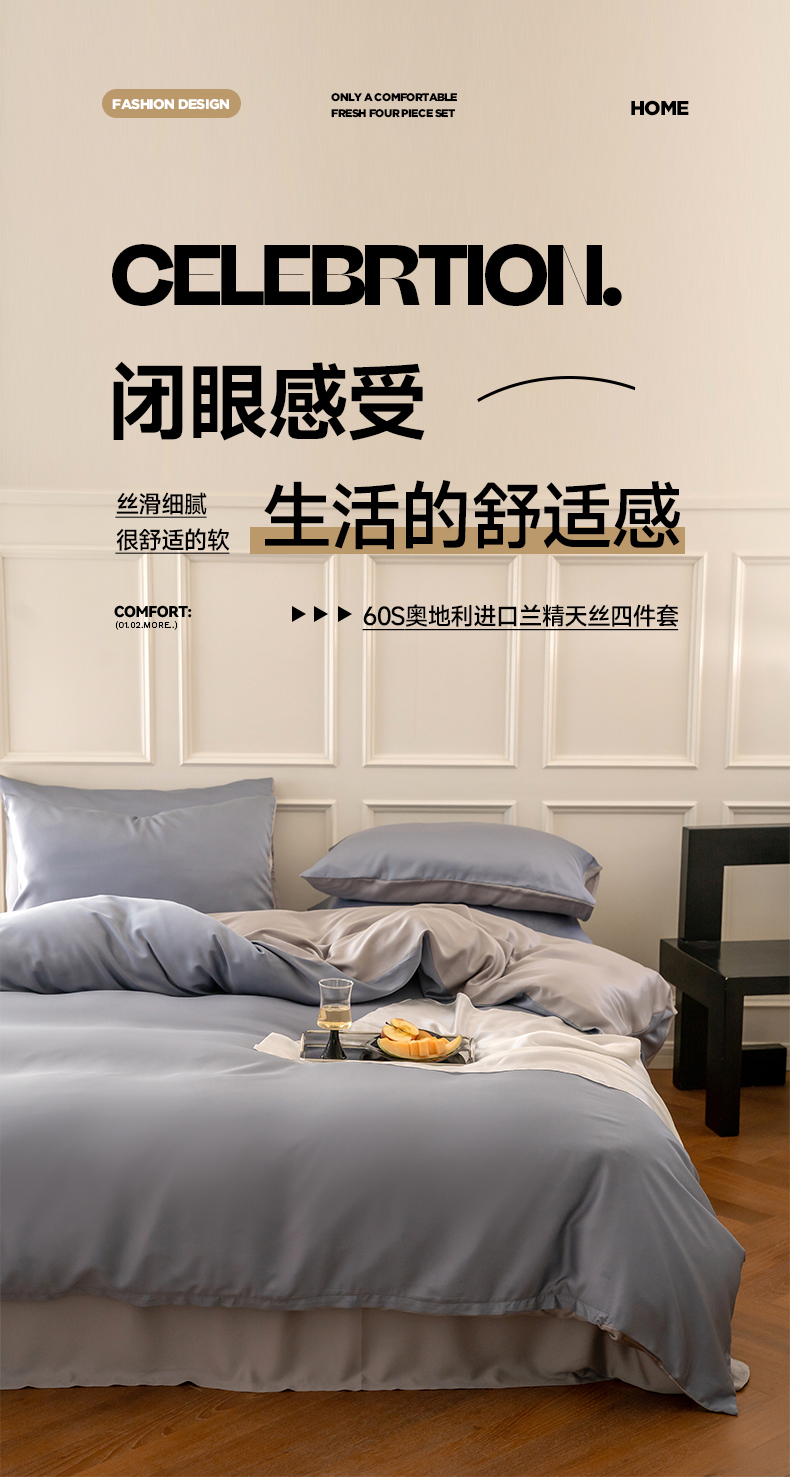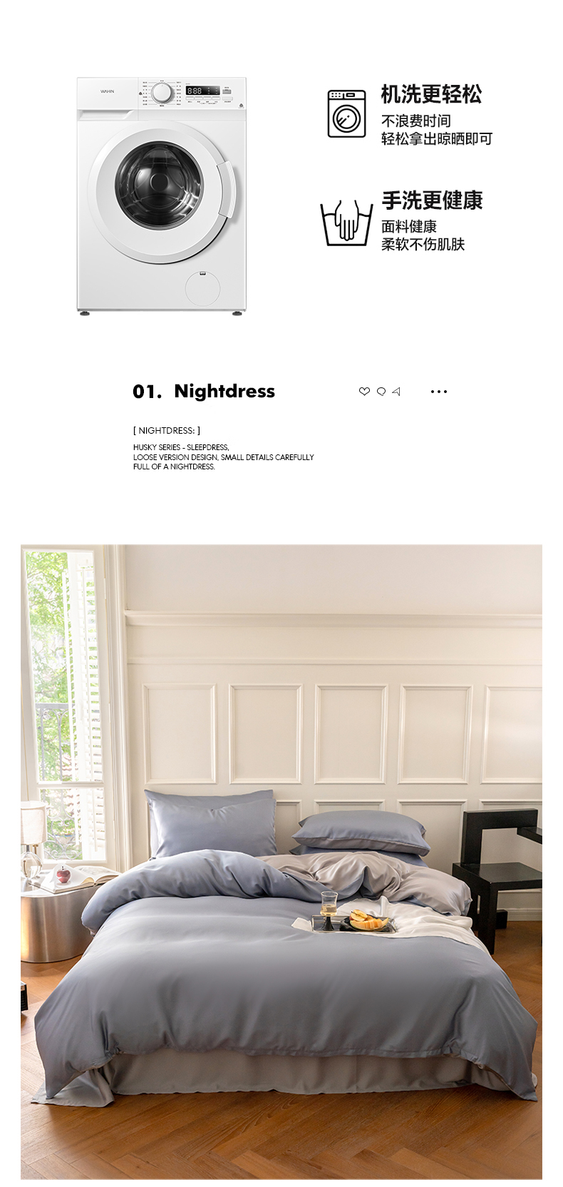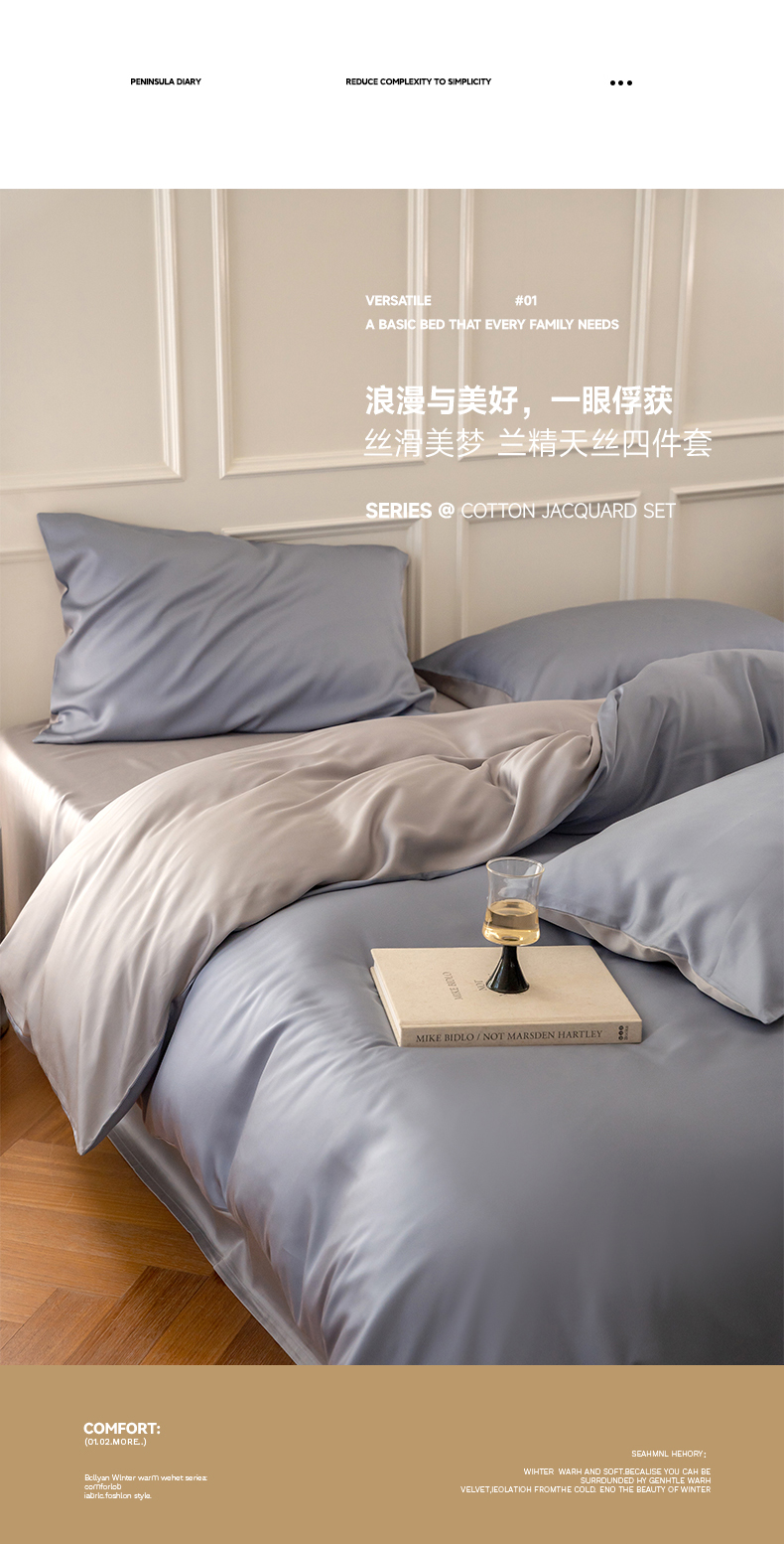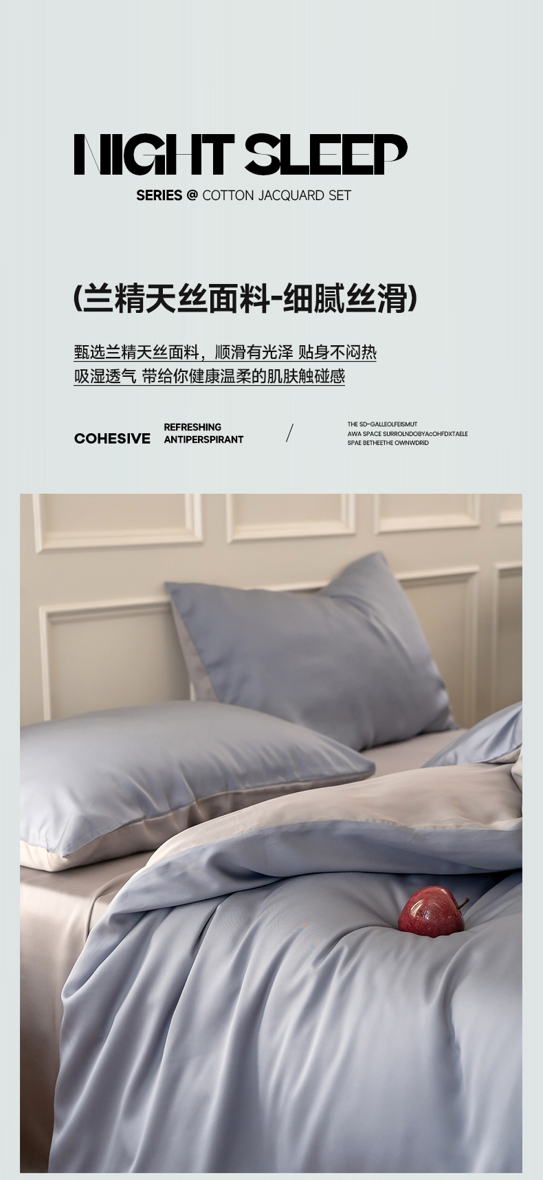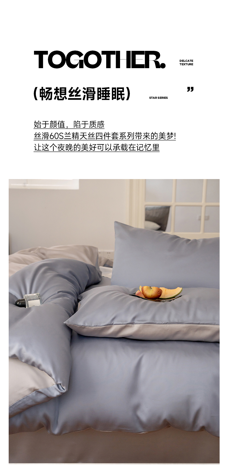 当前位置: 91家纺网 > 商品网购 > 床品套件 > 四件套 > 莱赛尔四件套 > 寐眠 2024新款60s兰精天丝四件套 烟青冷灰