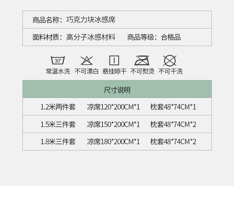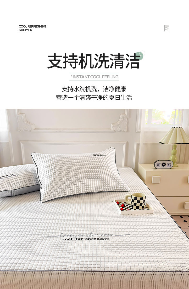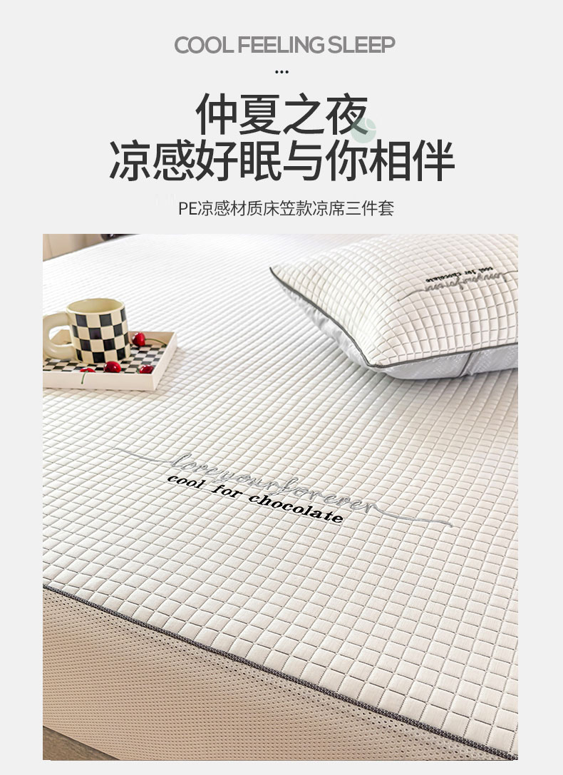 商品名称:宅部落 2024新款巧克力块PE凉感绣花A类抗菌床笠款凉席 字母灰