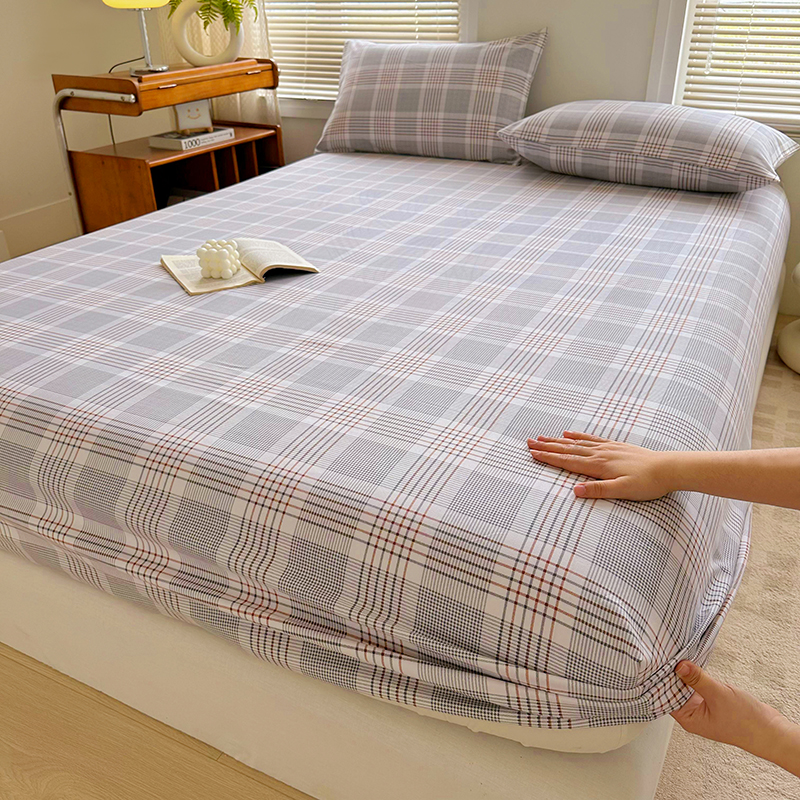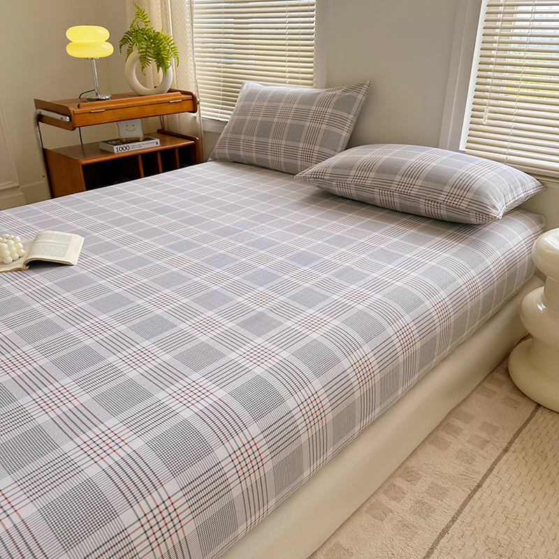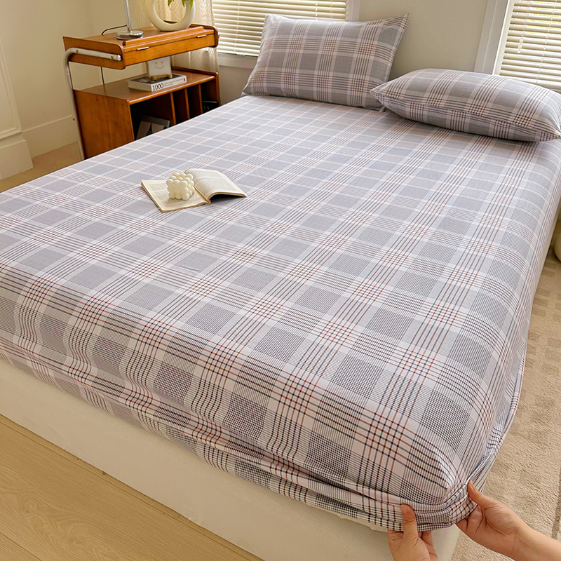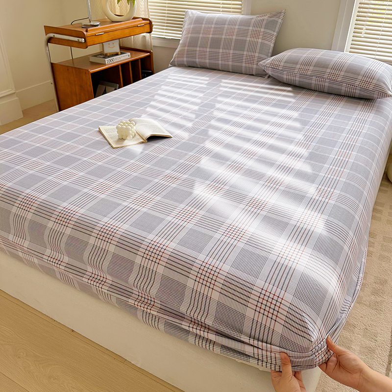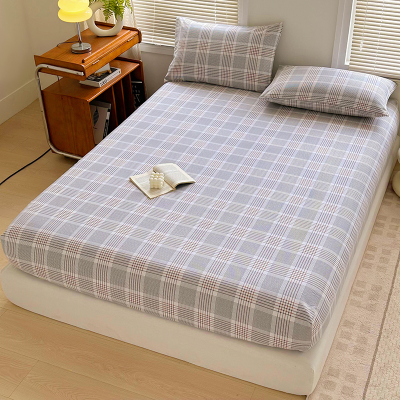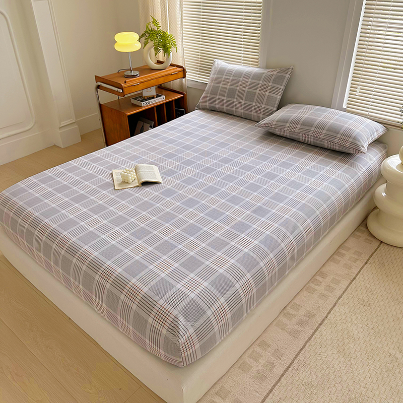 家贝爱 2024新款3倍加厚水洗棉床笠床单 格韵灰