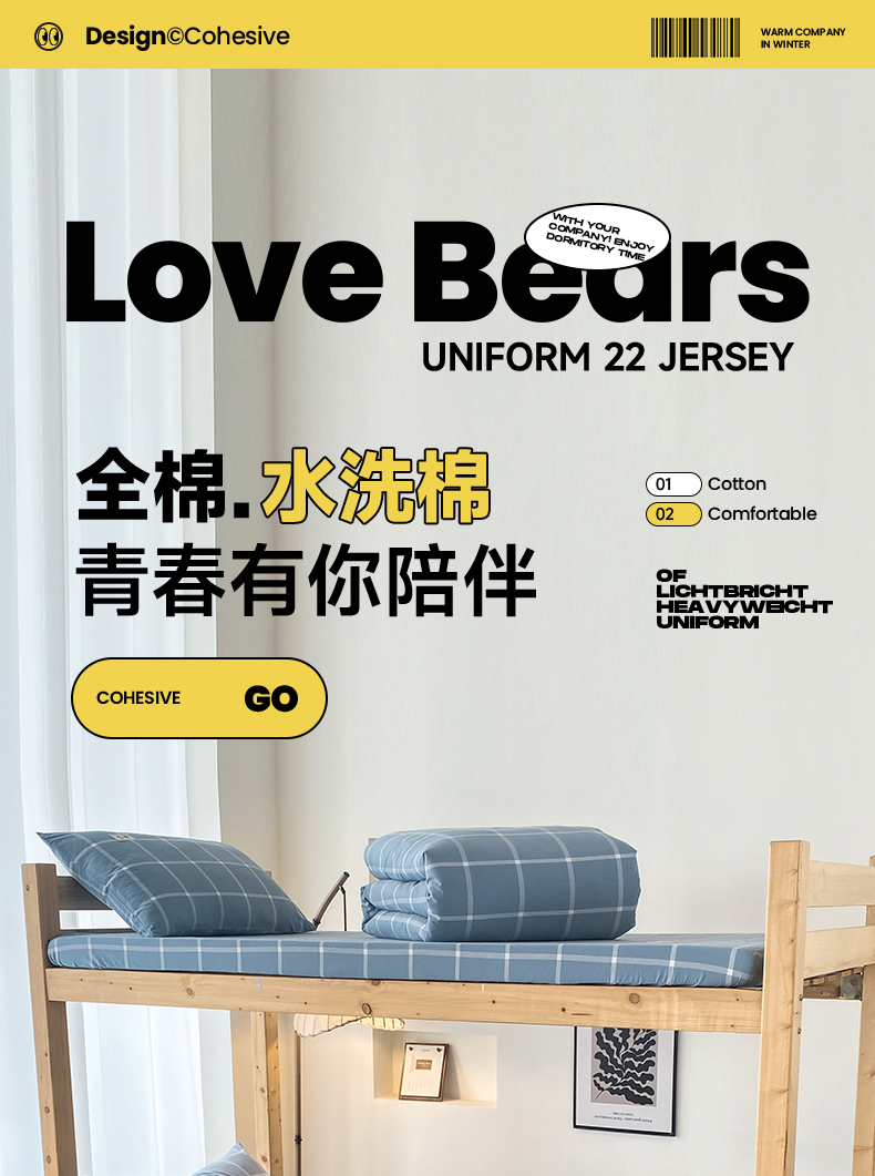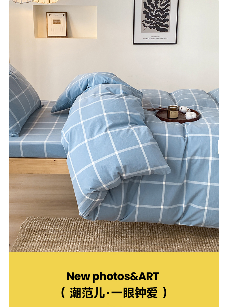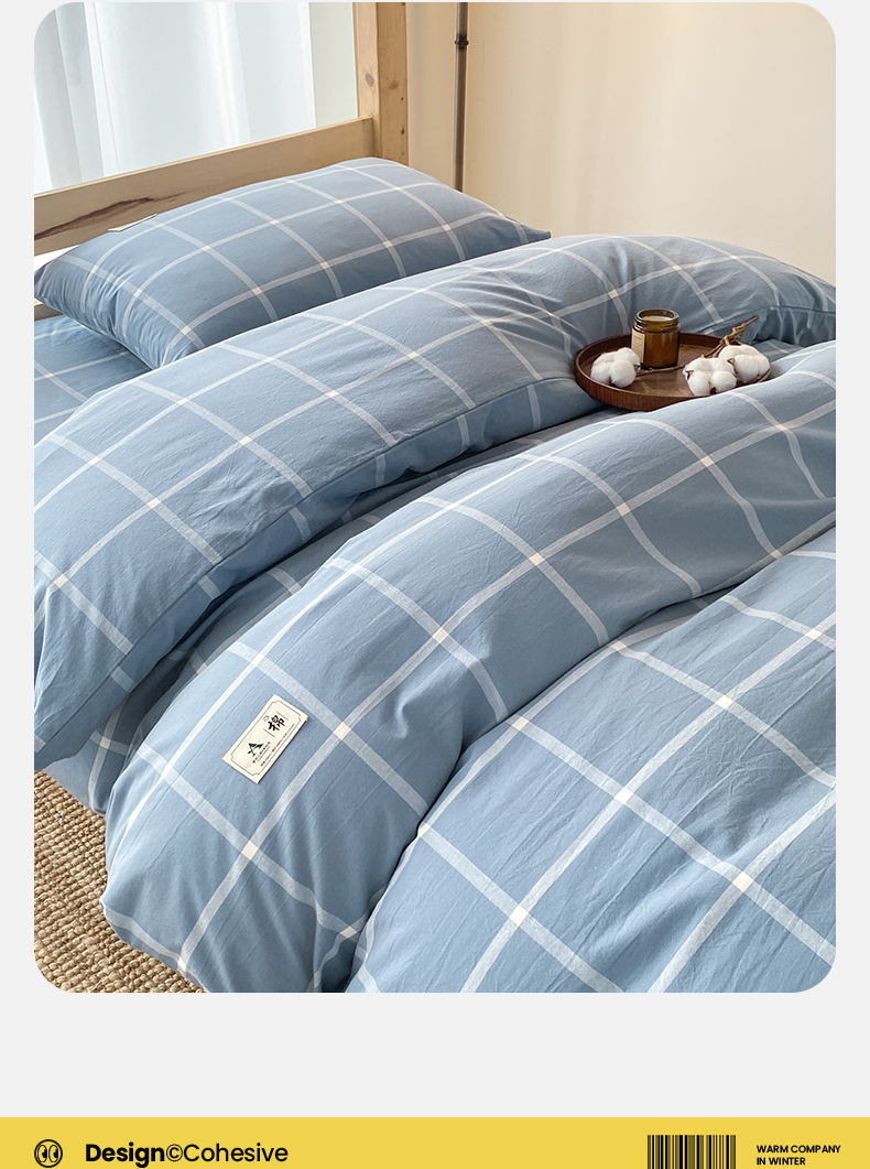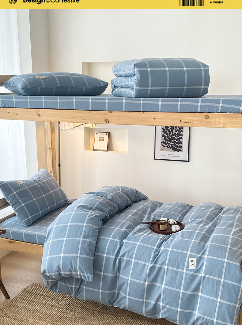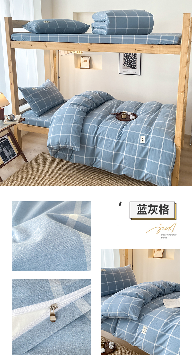 当前位置: 91家纺网 > 商品网购 > 床品套件 > 三件套 > 21度C 2024新款色织全棉水洗棉学生三件套 蓝灰格