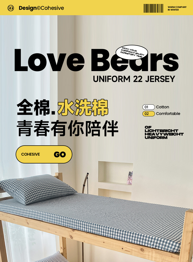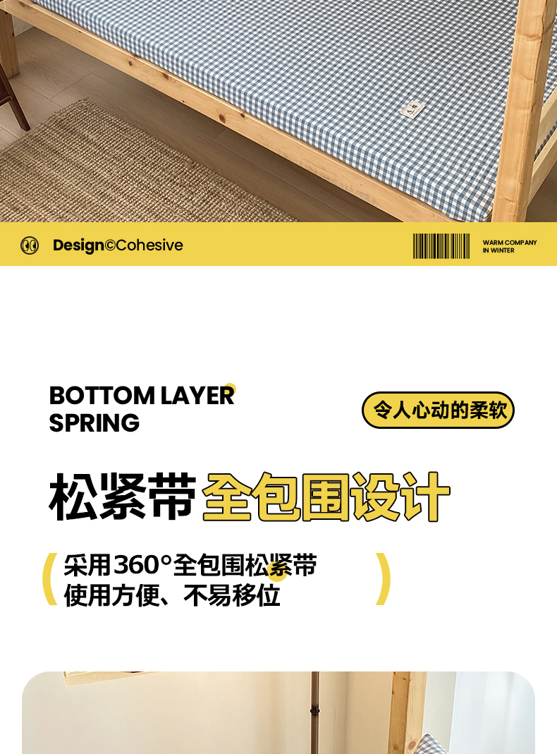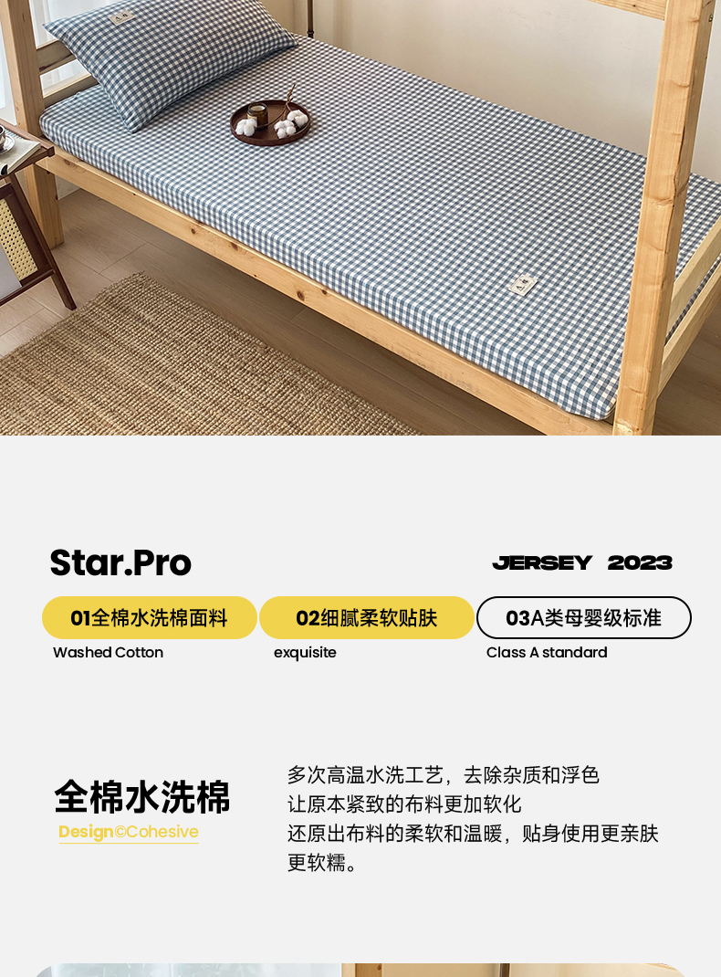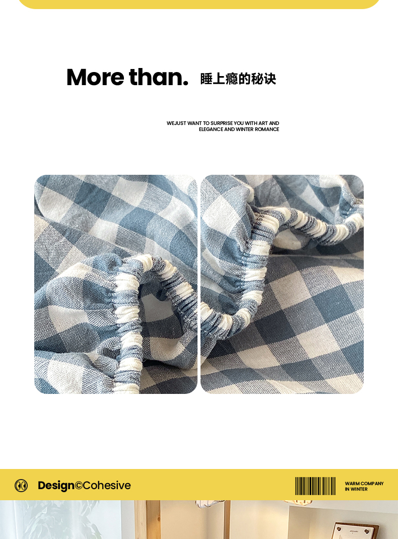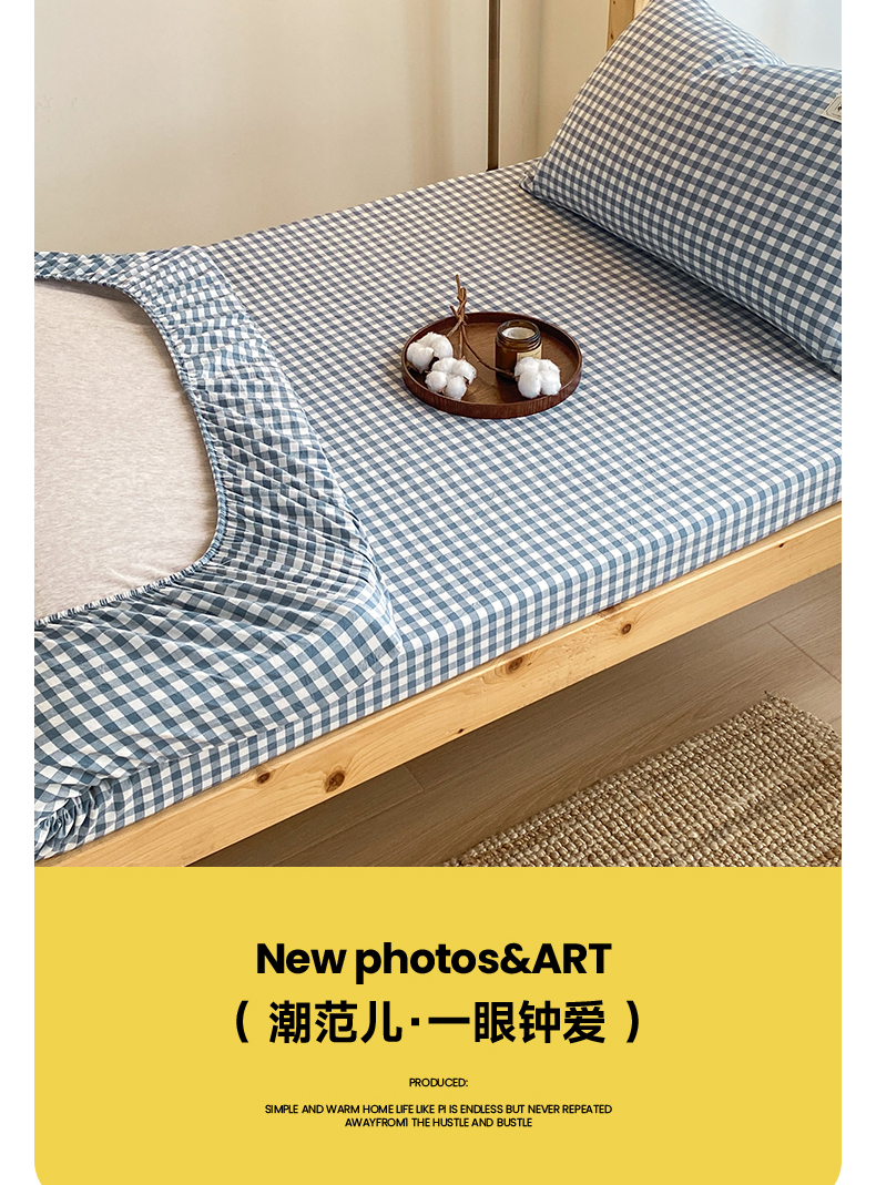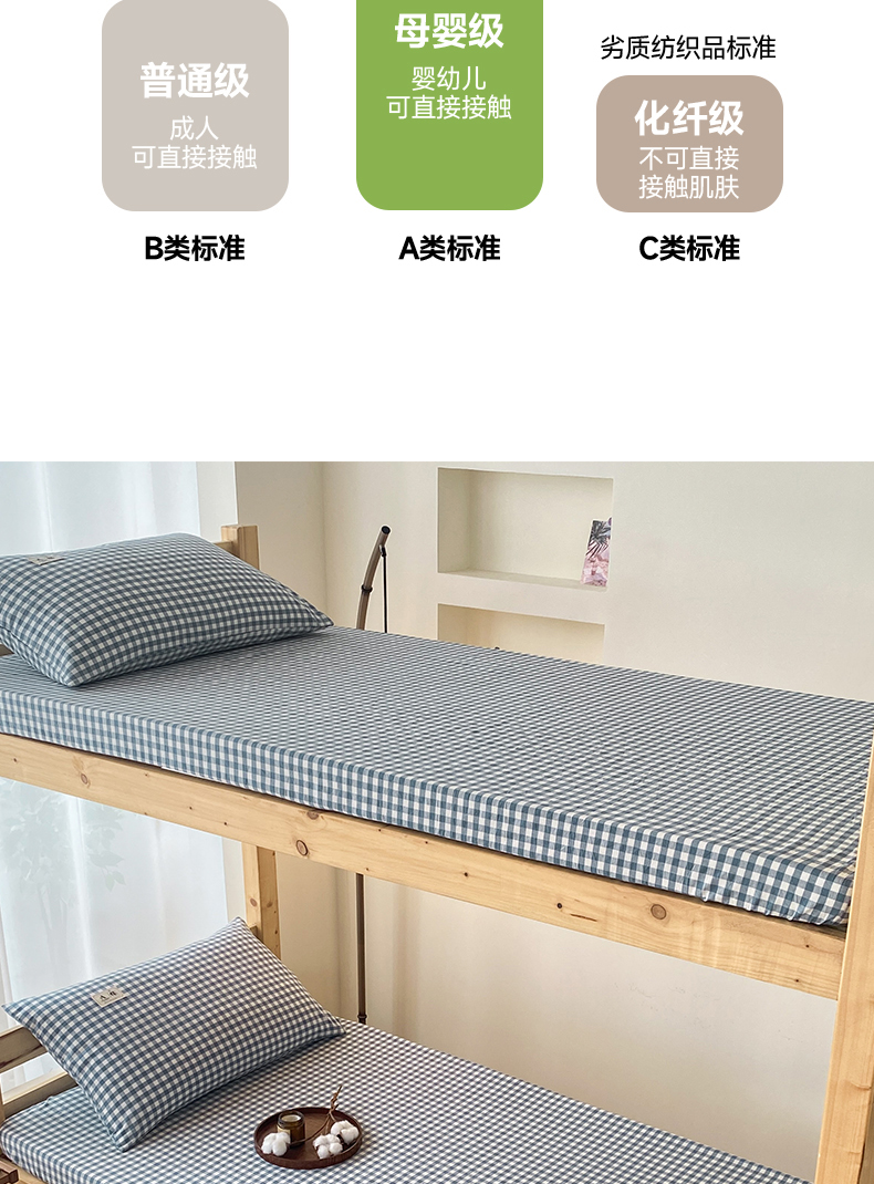 • 91家纺网 家纺一手货源 找家纺 21度C 2024新款色织全棉学生床笠 蓝小格