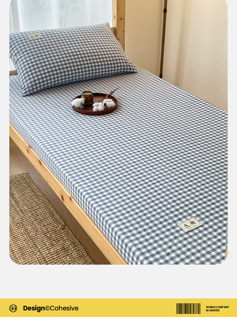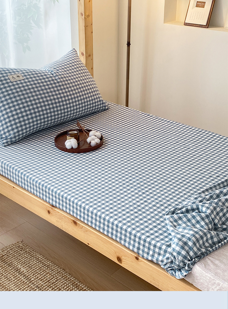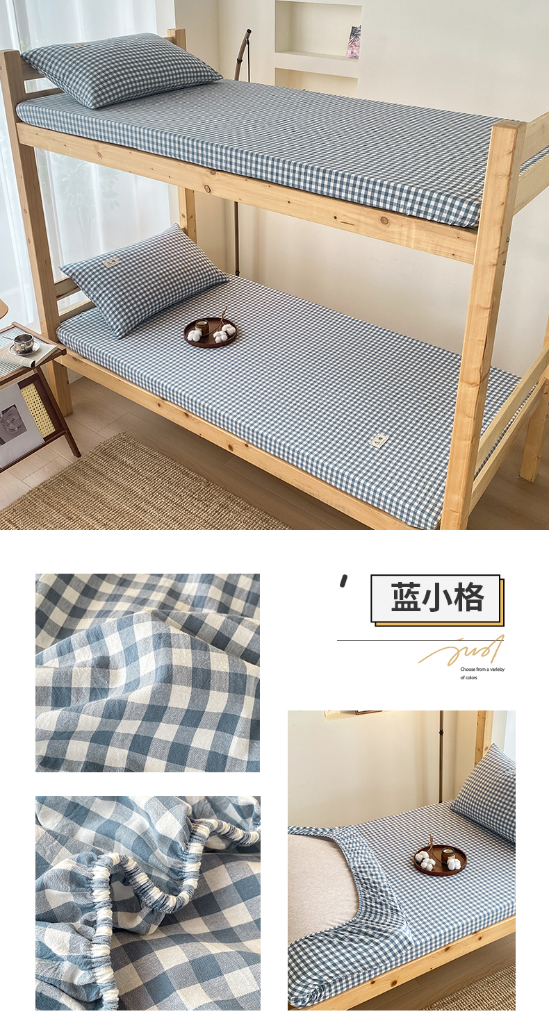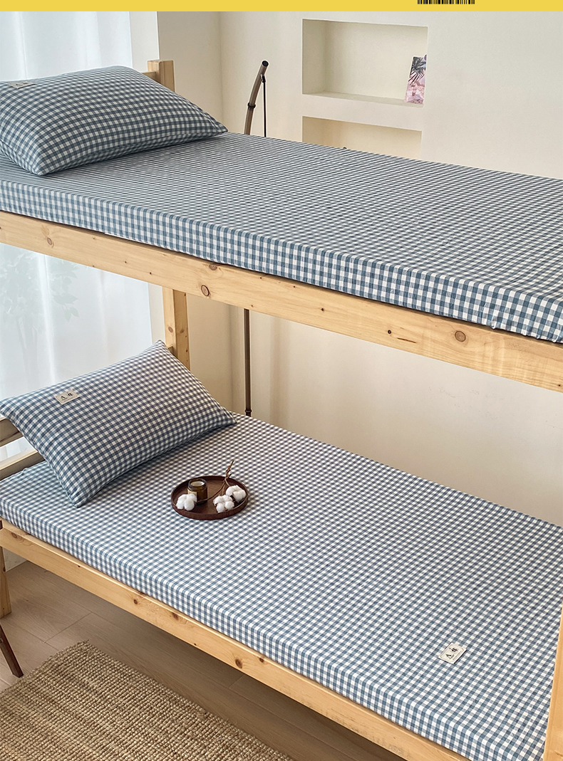 21度C 2024新款色织全棉学生床笠 蓝小格