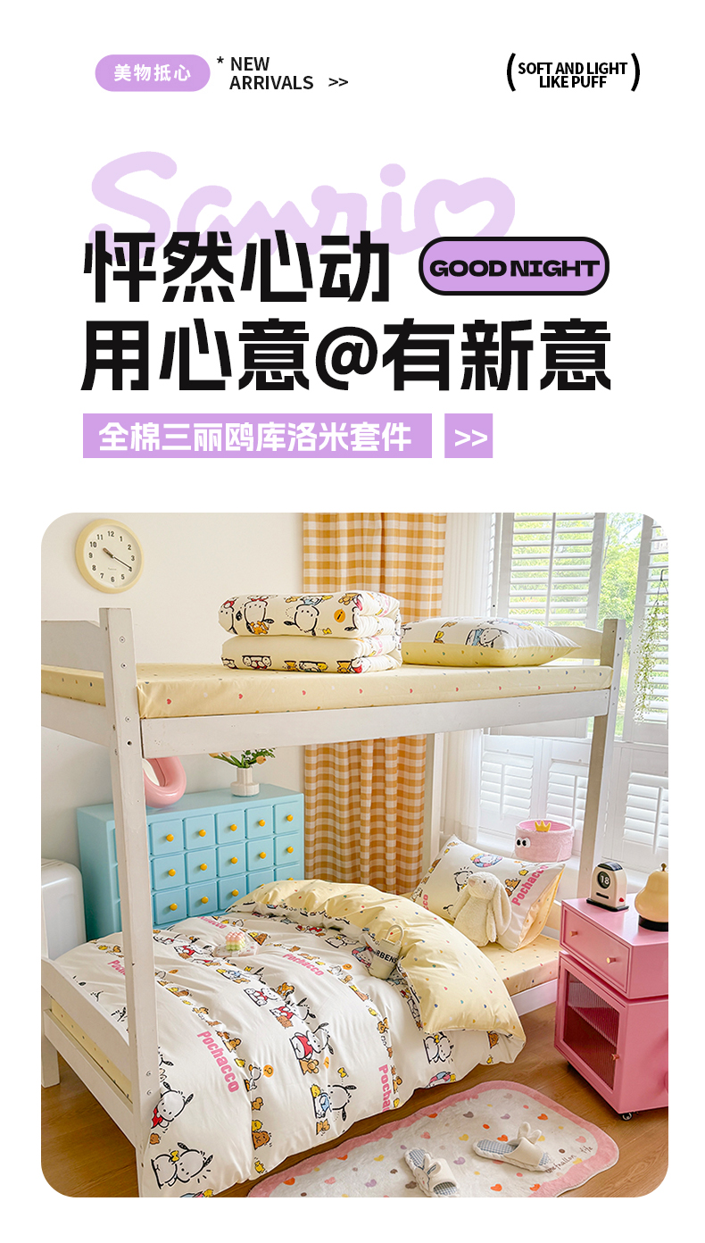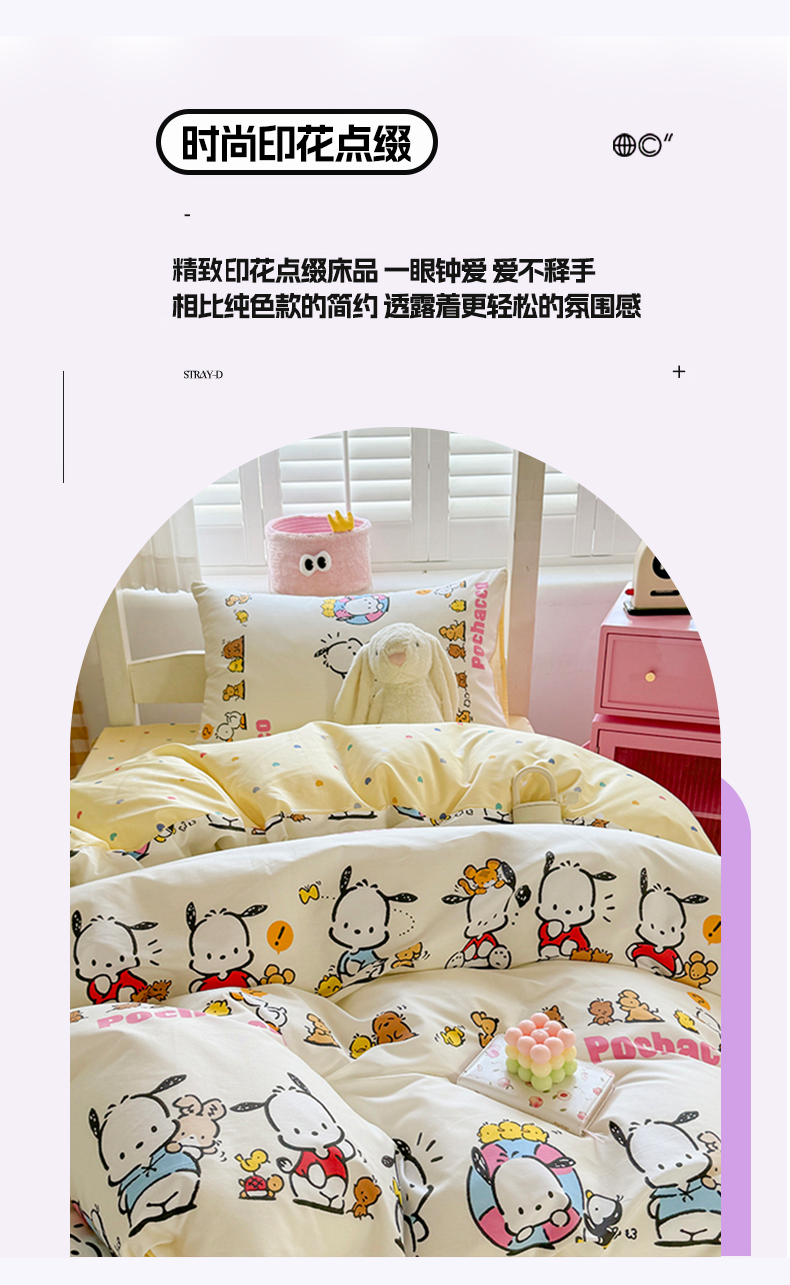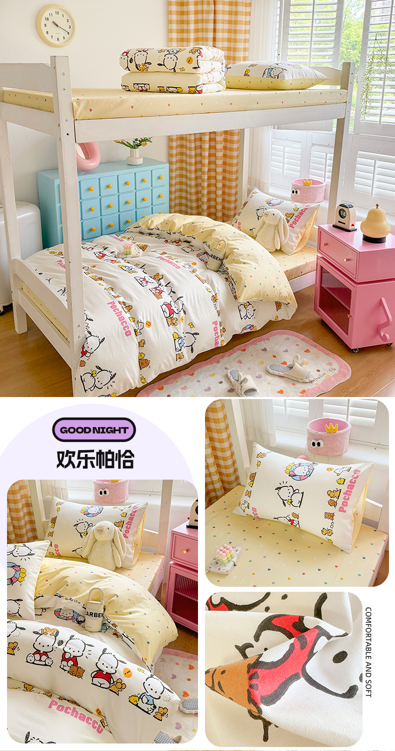当前位置: 91家纺网 > 商品网购 > 床品套件 > 四件套 > 全棉普通四件套 > 富瑞阁 2024新款13070全棉三丽鸥三件套四件套 欢乐帕恰