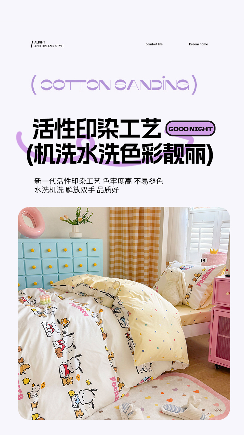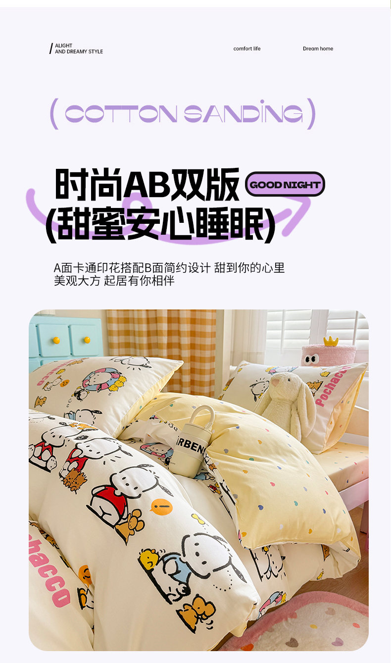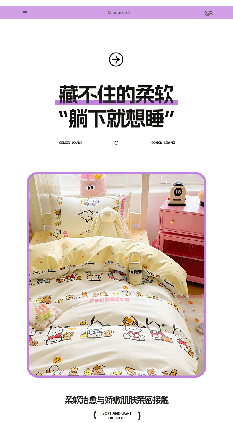当前位置: 91家纺网 > 商品网购 > 床品套件 > 四件套 > 全棉普通四件套 > 富瑞阁 2024新款13070全棉三丽鸥三件套四件套 欢乐帕恰