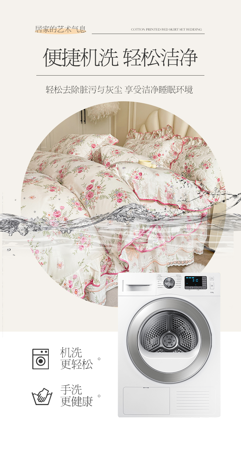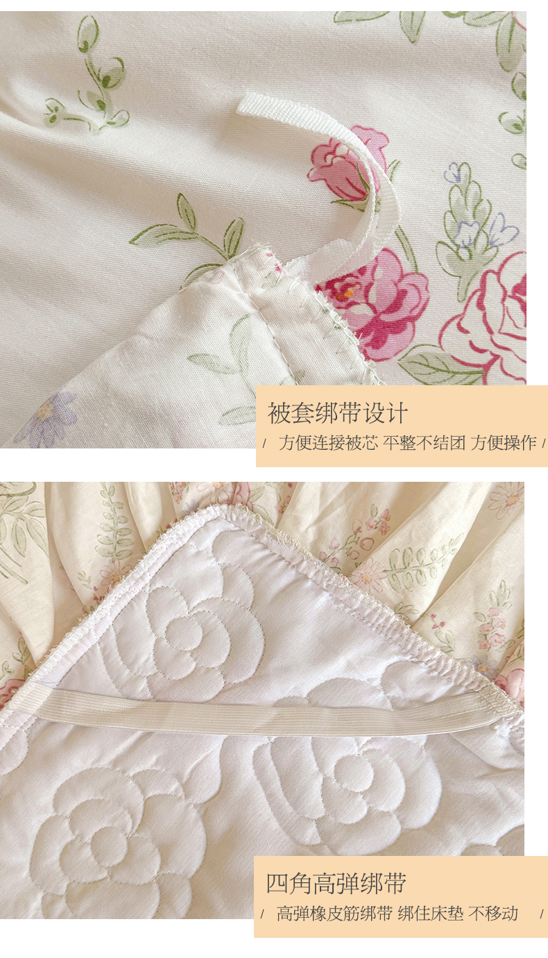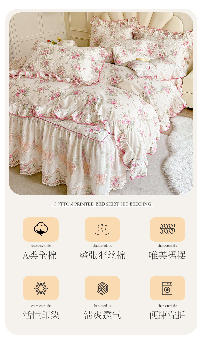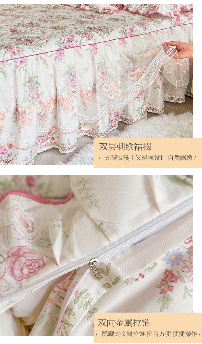 当前位置: 91家纺网 > 商品网购 > 床品套件 > 四件套 > 全棉普通四件套 > 宜凡家纺 2024新款全棉印花公主风夹棉床裙四件套 芳菲花园
