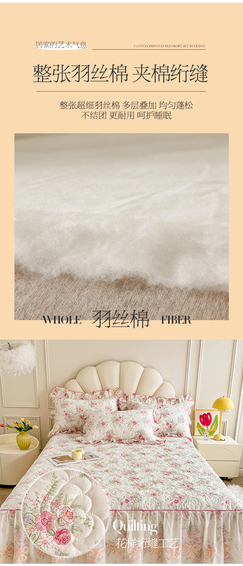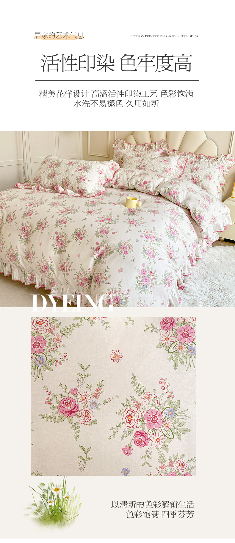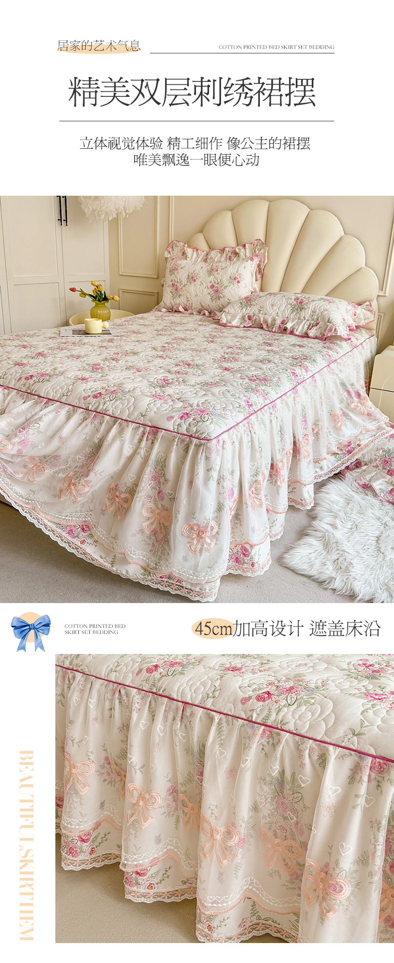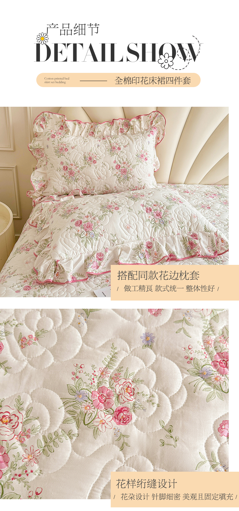 当前位置: 91家纺网 > 商品网购 > 床品套件 > 四件套 > 全棉普通四件套 > 宜凡家纺 2024新款全棉印花公主风夹棉床裙四件套 芳菲花园