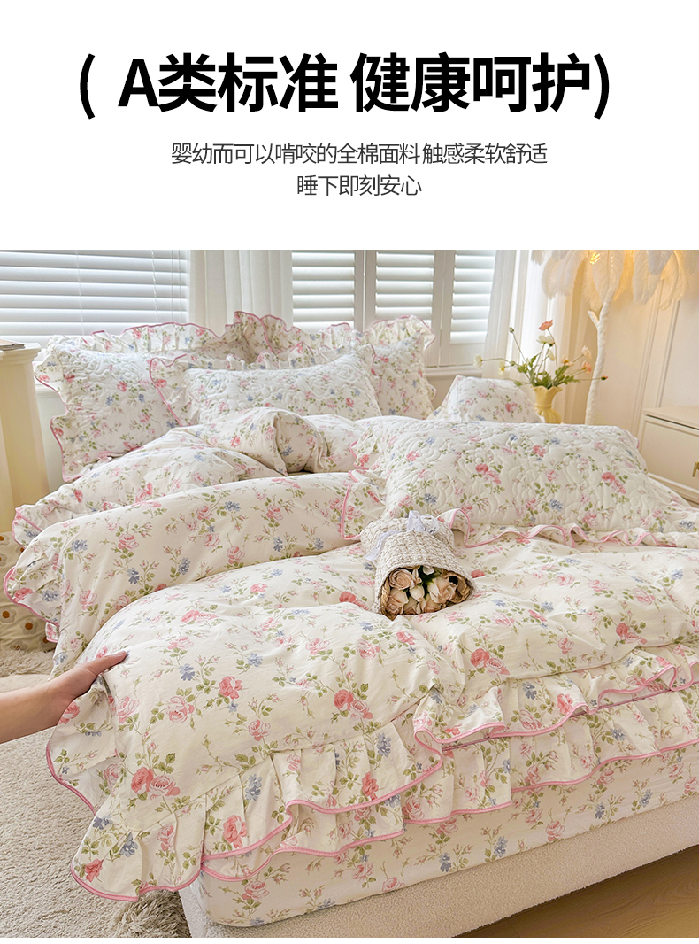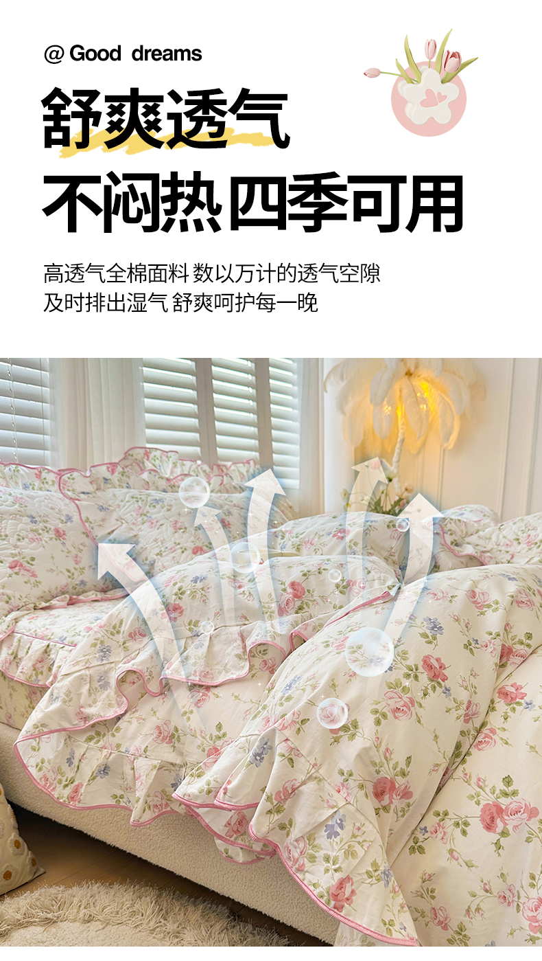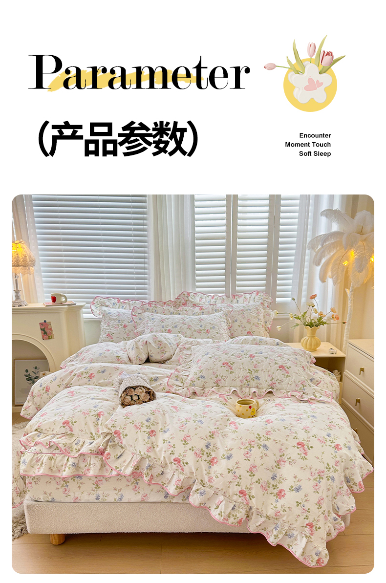 当前位置: 91家纺网 > 商品网购 > 床品套件 > 四件套 > 全棉普通四件套 > 宜凡家纺 2024新款全棉印花公主风夹棉床笠四件套 生如夏花
