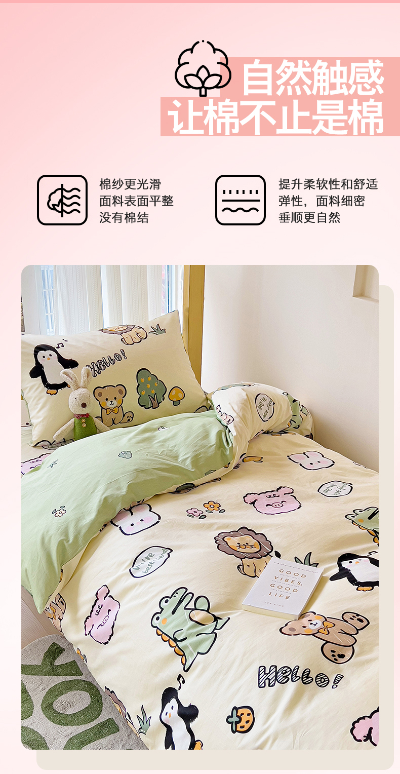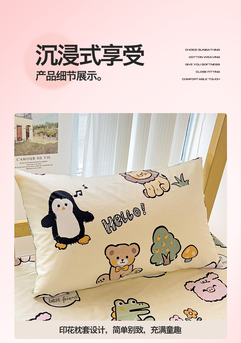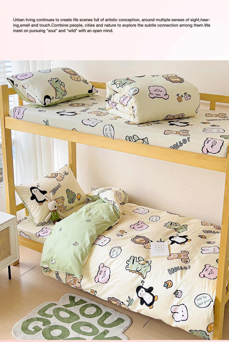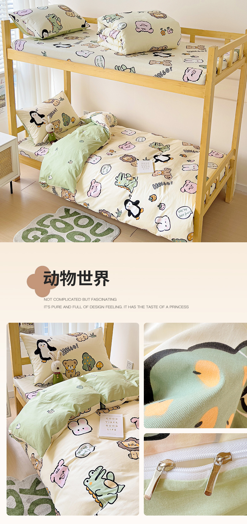 当前位置: 91家纺网 > 商品网购 > 床品套件 > 多件套 > 多件套 > 名兮家居 2024新款全棉印花学生款多件套 动物世界